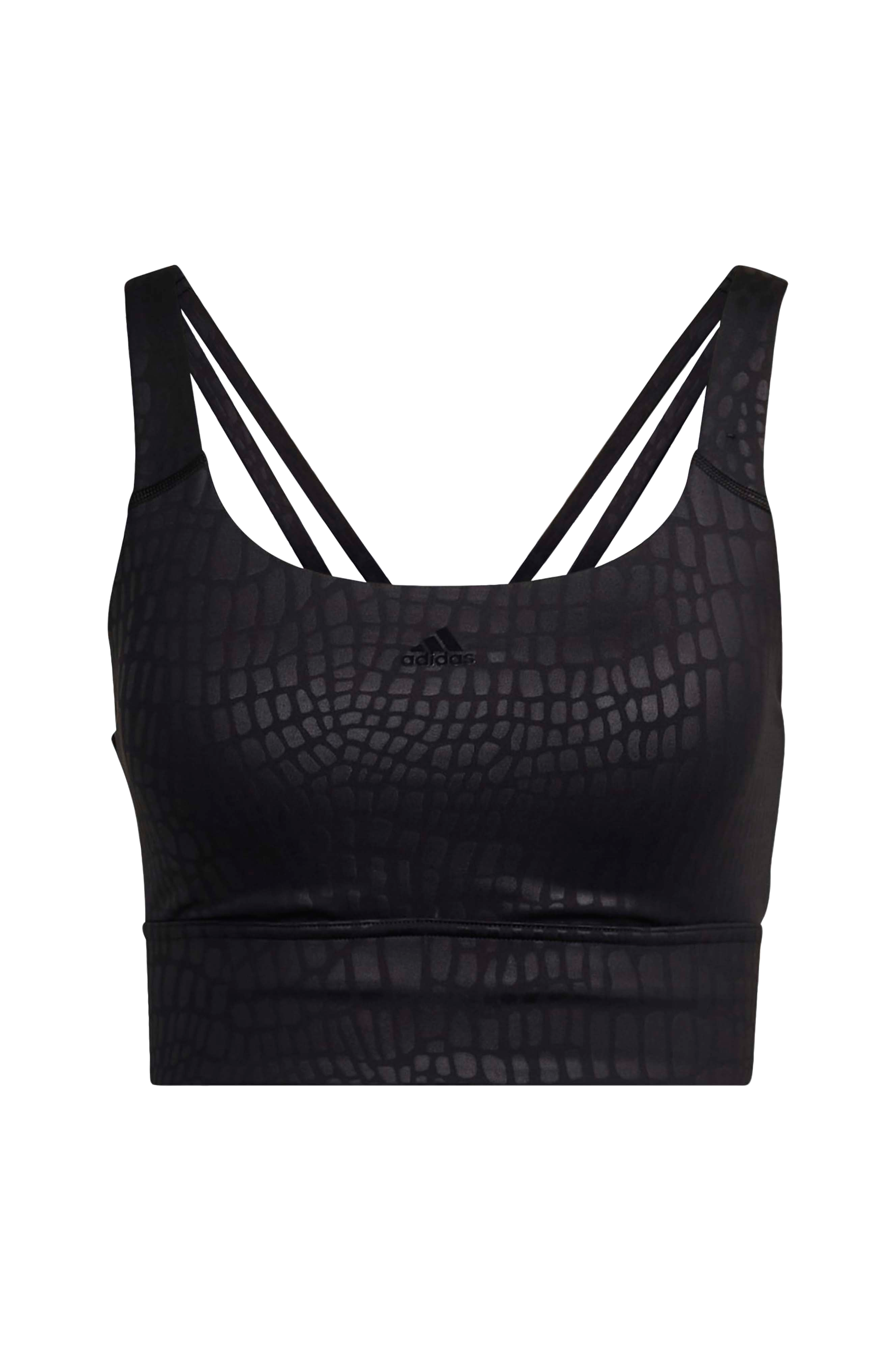 • Medium support• Elastisk materiale• Fugtabsorberende AEROREADY• Indbygget polstring• Firkantet halsudskæring• Elastisk bånd nederst