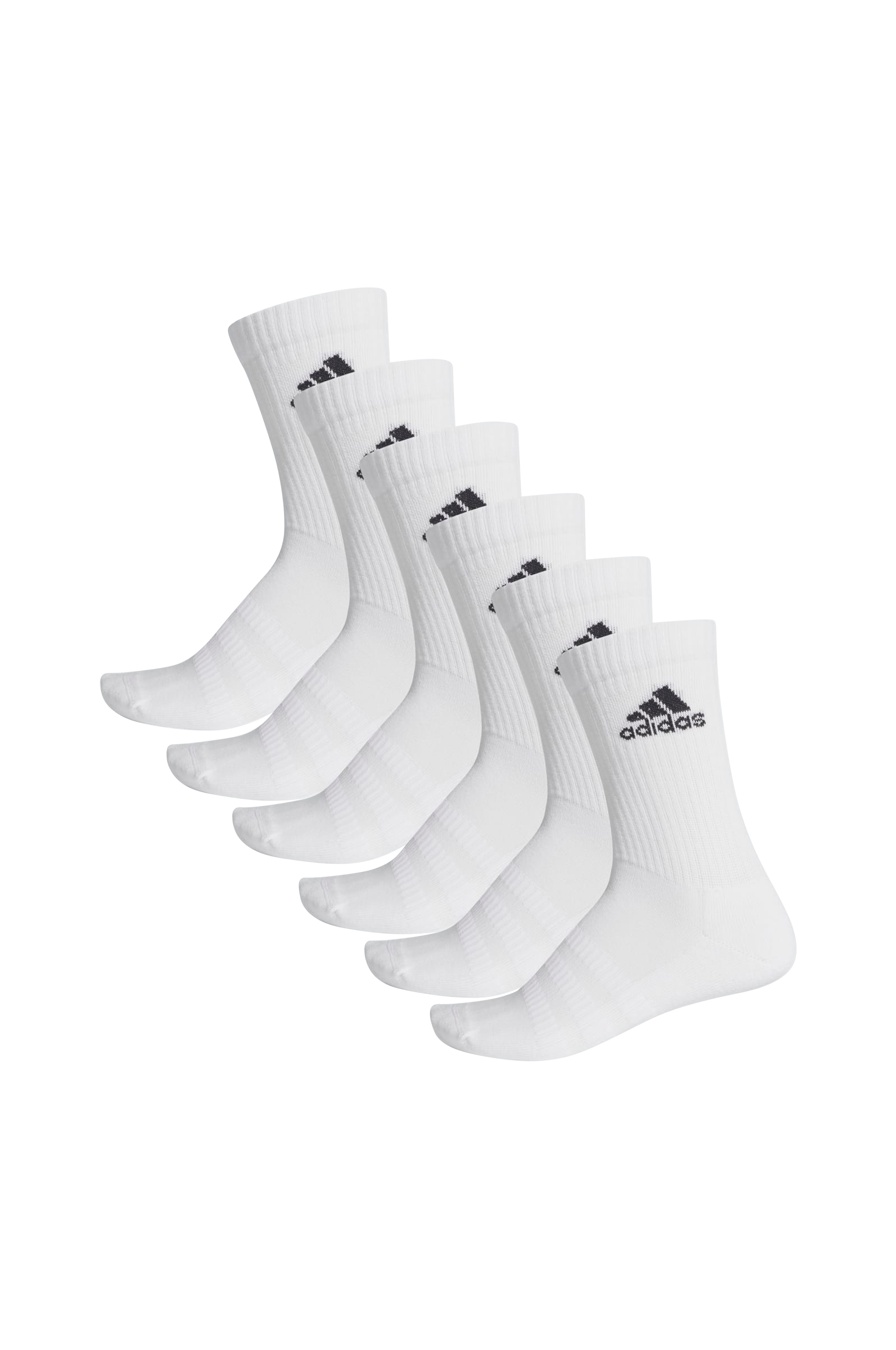 Strømper Cushioned CRW 6-Pack fra adidas Sport Performance. Skøn model med støddæmpning fra hæl til tå i et materiale med meget bomuld. Blød tåsøm og indvævet svangstøtte giver forbedret pasform og komfort.