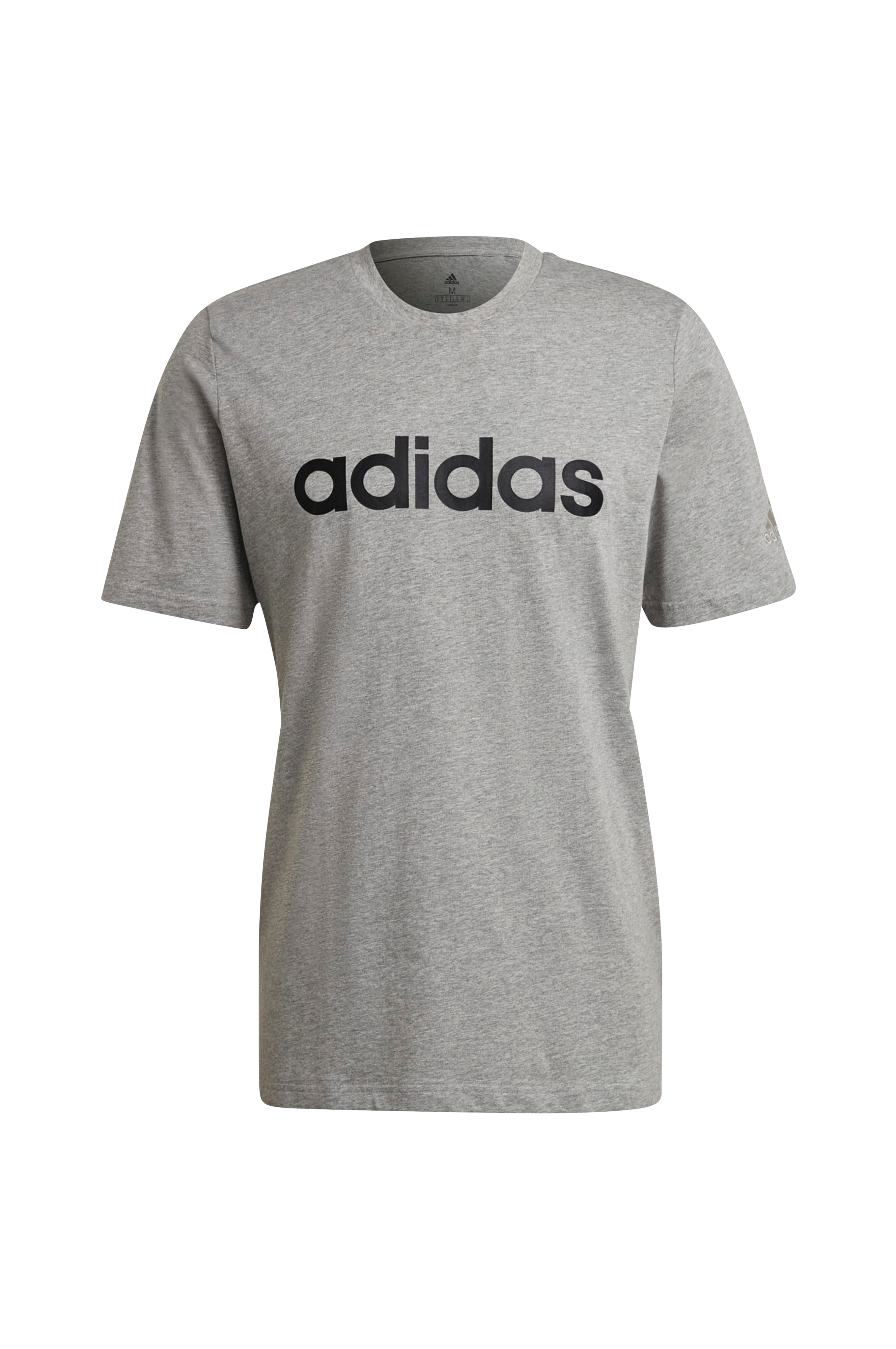 T-shirt med rund hals med ribkant og print adidas-logo foran.