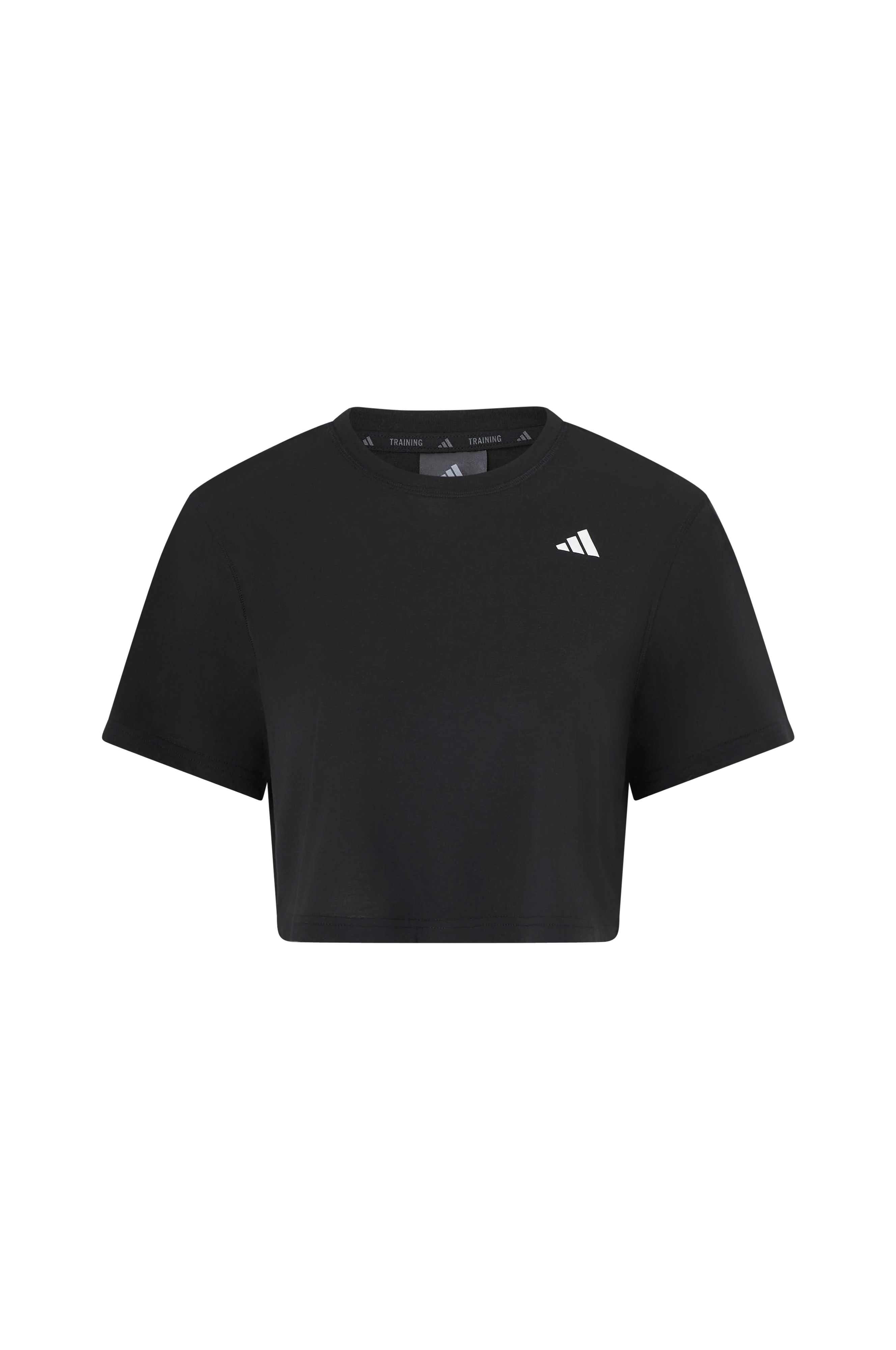 • Løs pasform• Blødt, hurtigtørrende materiale med fugttransporterende specifikationer• Rund hals• Croppet længde