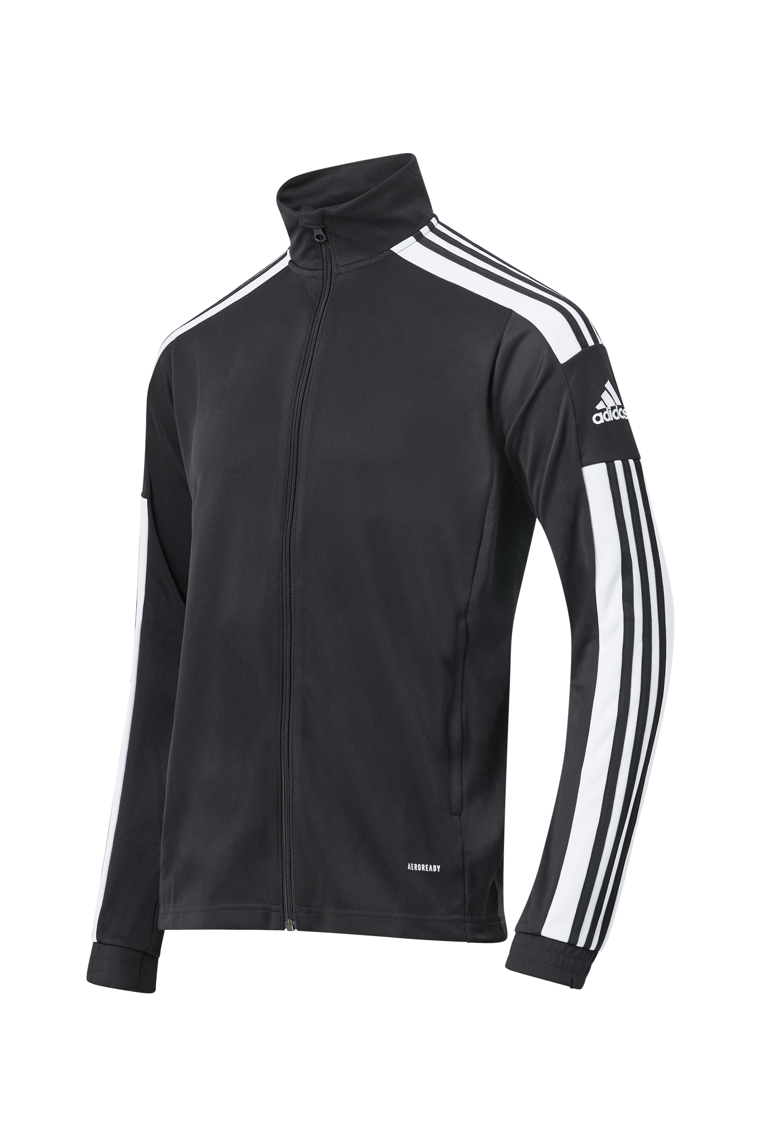 Jakke til fodboldtræning fremstillet i dobbeltstrikket materiale med fugtabsorberende AEROREADY. Standkrave og gennemgående lynlås. To lommer med lynlås og ribkanter i ærmekant.