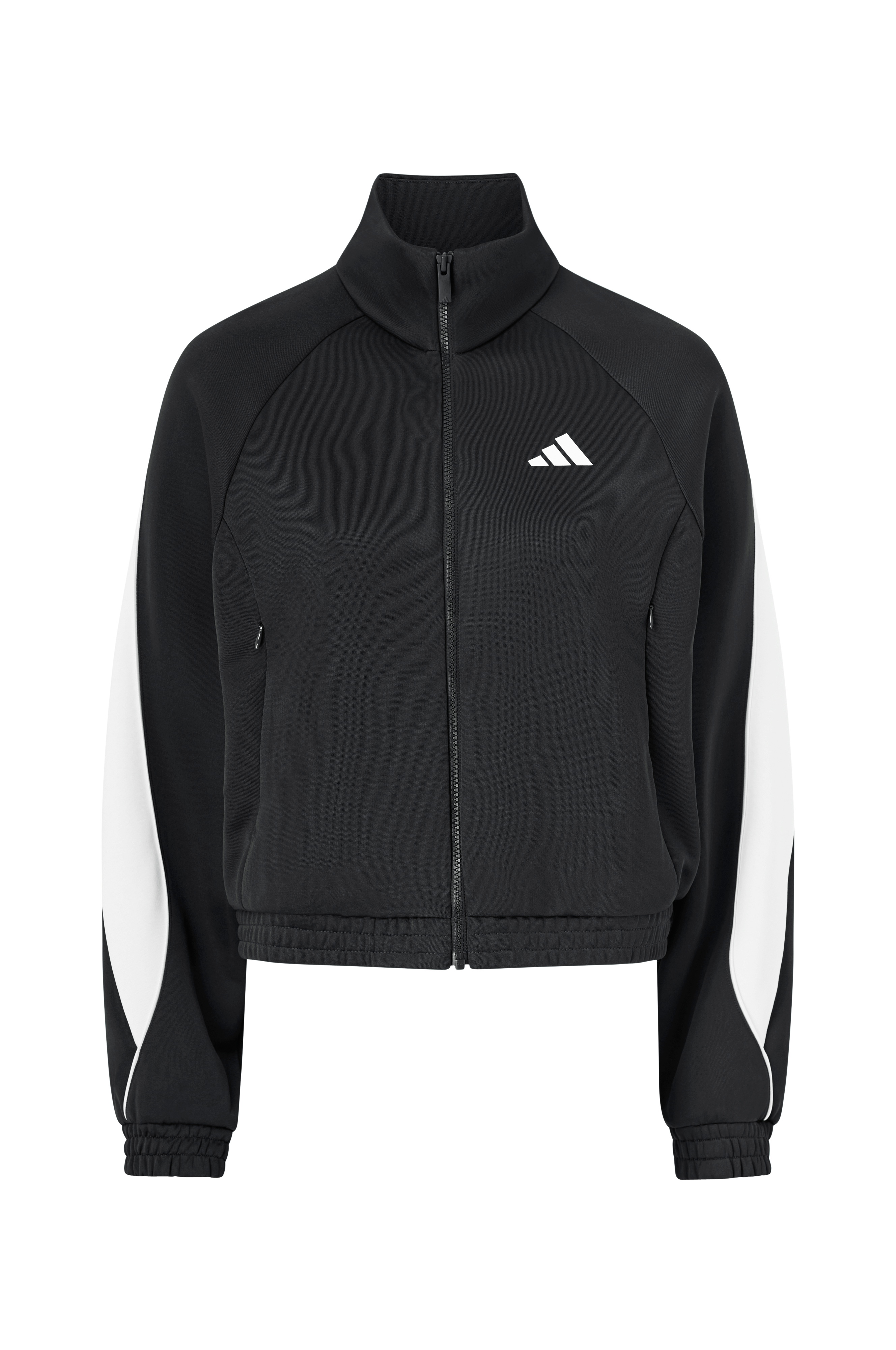 • Træningsjakke med skinnende materiale• Opretstående krave• Lange ærmer• Logoprint på brystet• Lynlåslukning• To lynlåslommer• Elastik ved manchetterne og nederst• Normal pasform