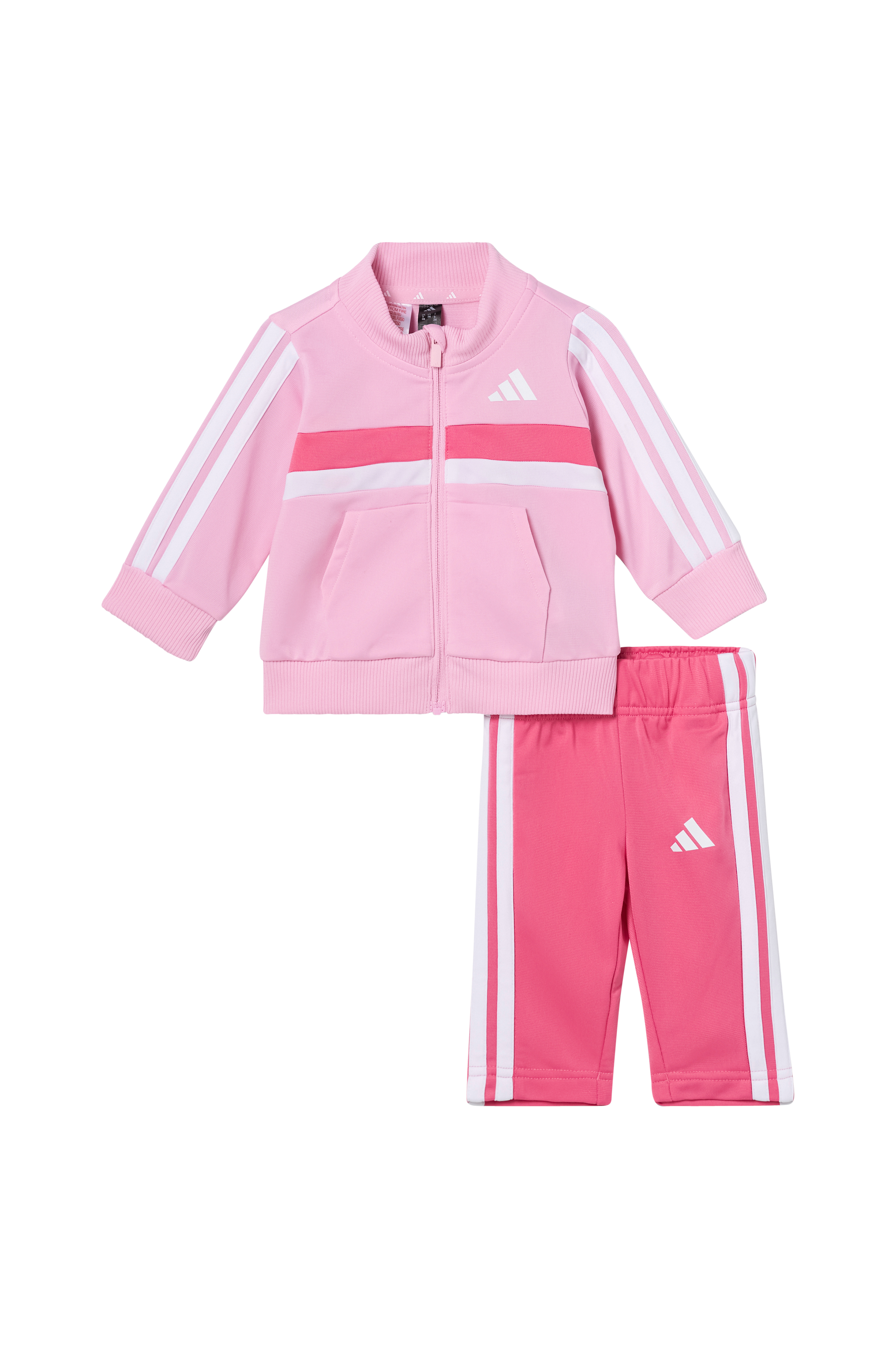 • Træningssæt i let skinnende jersey• Jakke med ribbet krave og lynlås• To lommer foran• Ribmanchetter ved manchetterne og nederst• Bukser med elastisk talje og indvendig træksnørre