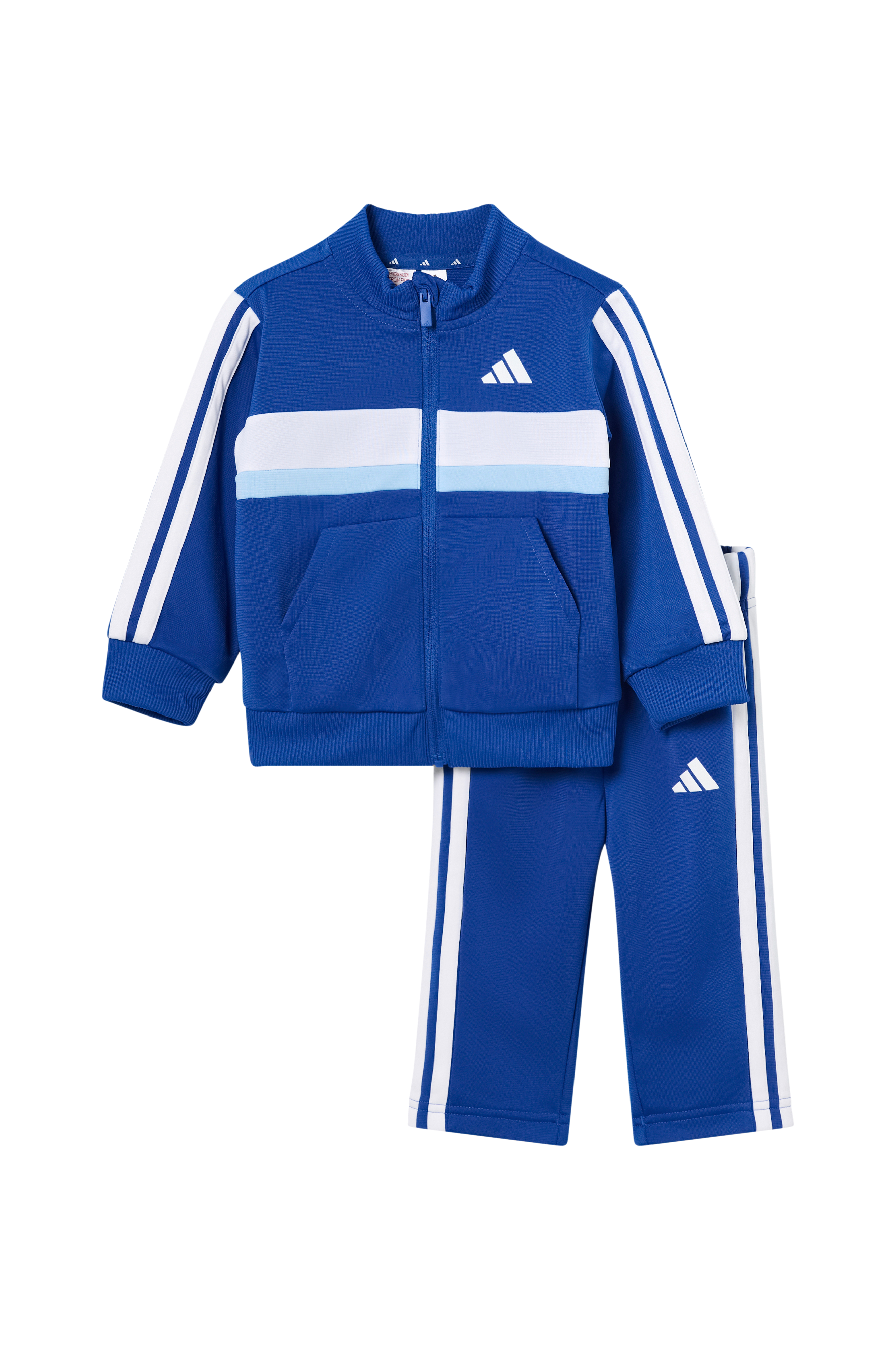 • Træningssæt i let skinnende jersey• Jakke med ribbet krave og lynlås• To lommer foran• Ribmanchetter ved manchetterne og nederst• Bukser med elastisk talje og indvendig træksnørre