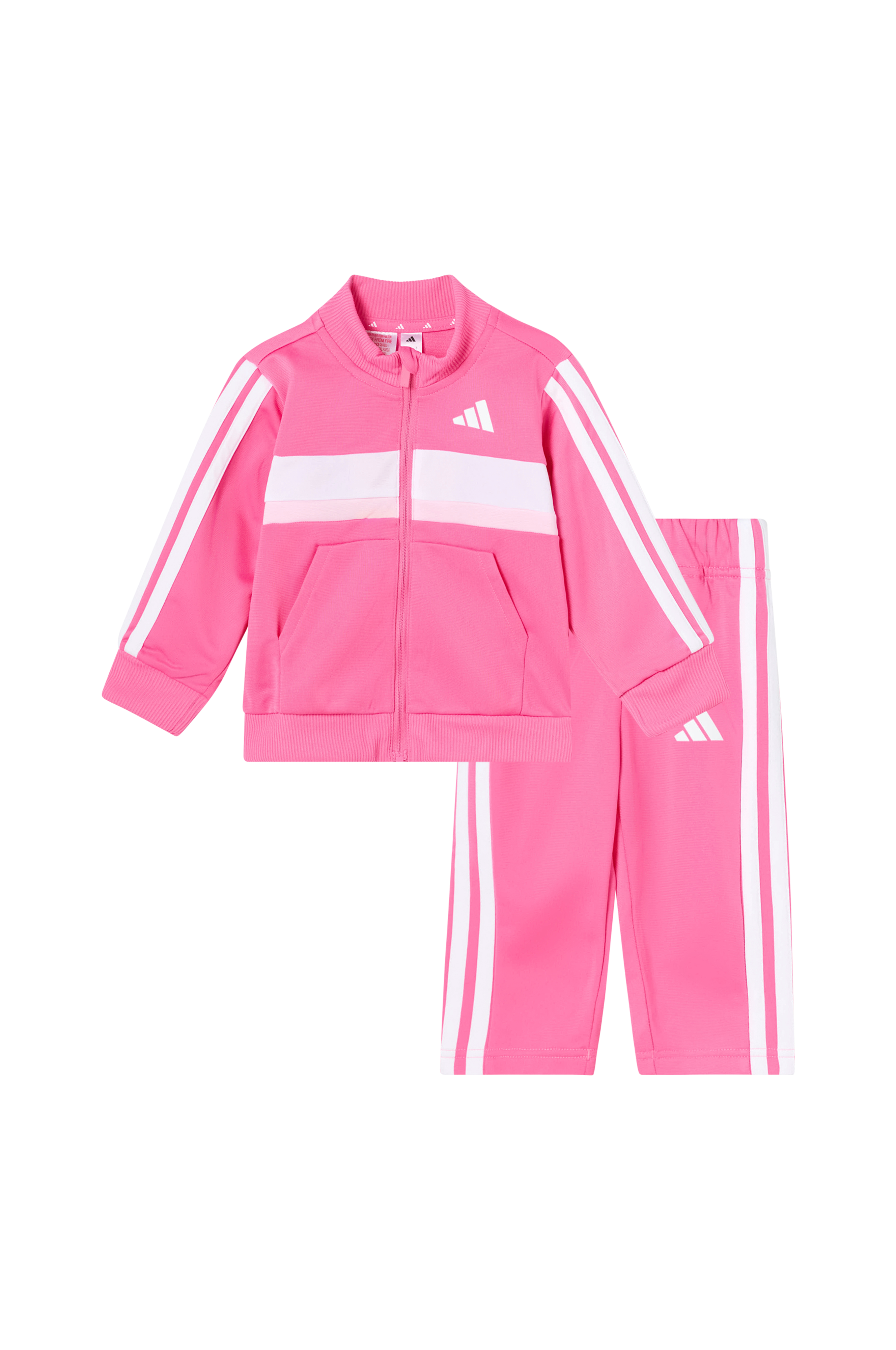 • Træningssæt i let skinnende jersey• Jakke med ribbet krave og lynlås• To lommer foran• Ribmanchetter ved manchetterne og nederst• Bukser med elastisk talje og indvendig træksnørre