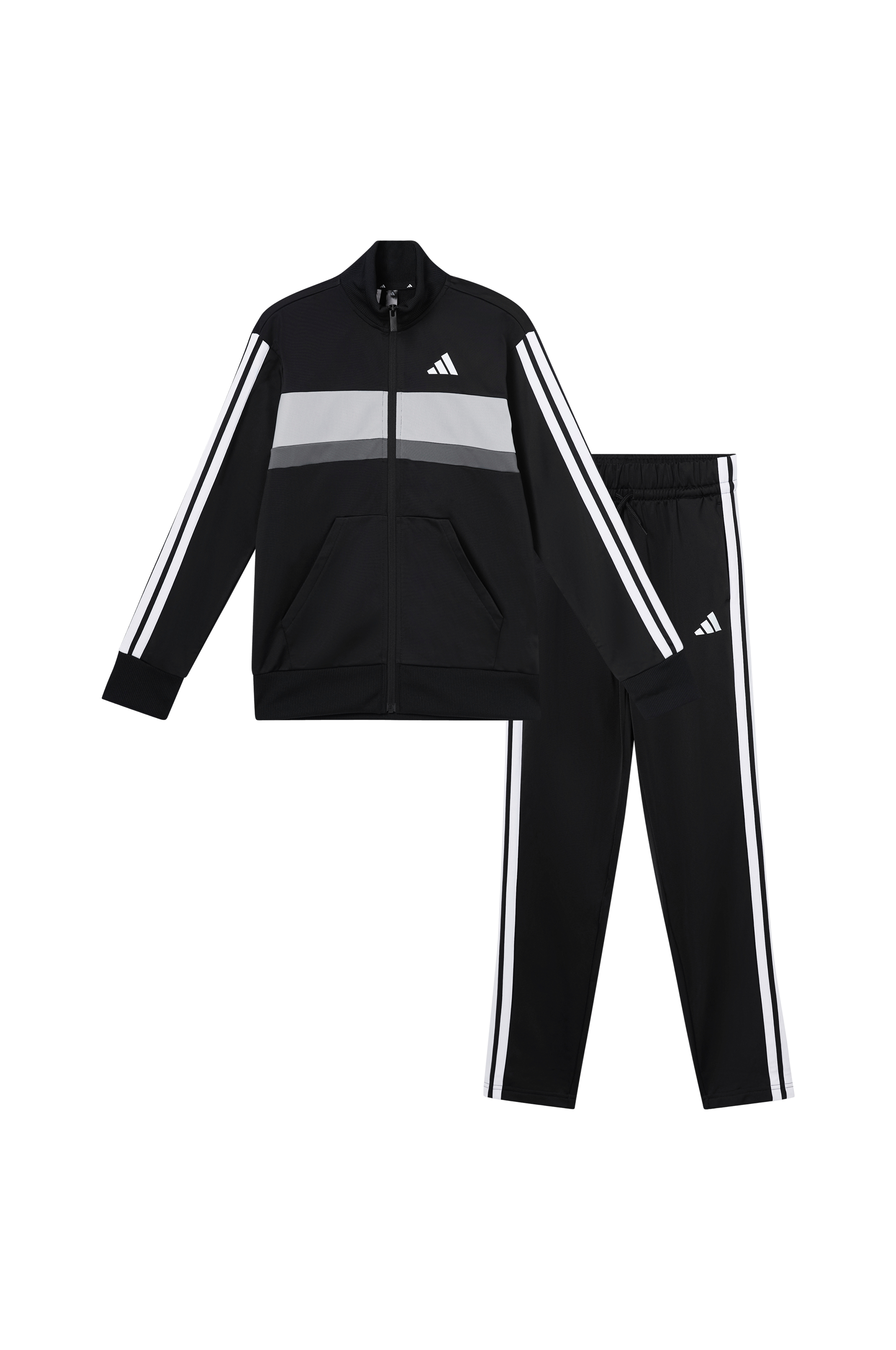 • Træningssæt i let skinnende jersey• Jakke med ribbet krave og lynlås• Sidelommer• Ribmanchetter ved manchetterne og nederst• Bukser med elastisk talje og træksnørre