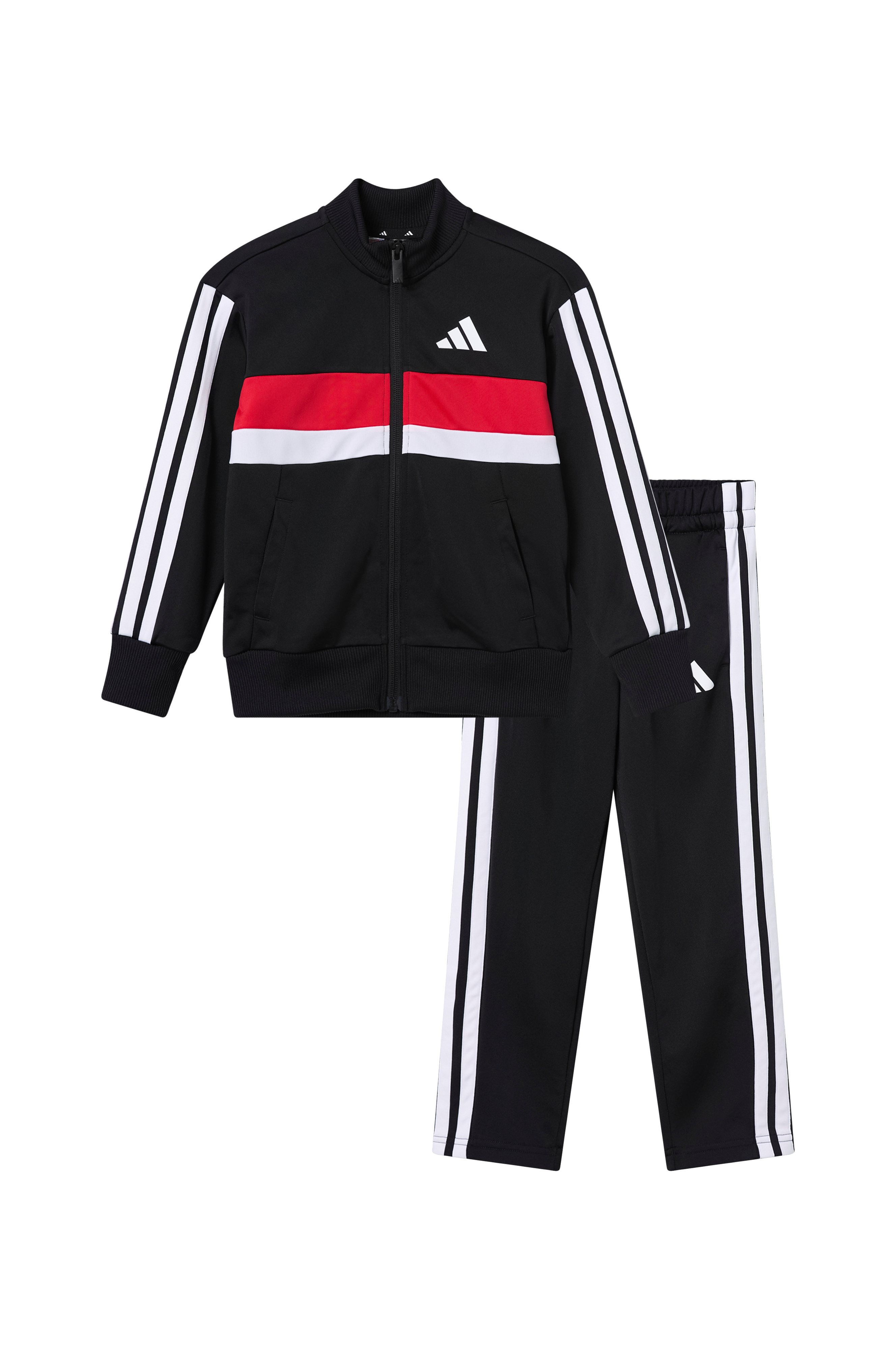 • Træningssæt i let skinnende jersey• Jakke med ribbet krave og lynlås• Sidelommer• Ribmanchetter ved manchetterne og nederst• Bukser med elastisk talje og træksnørre
