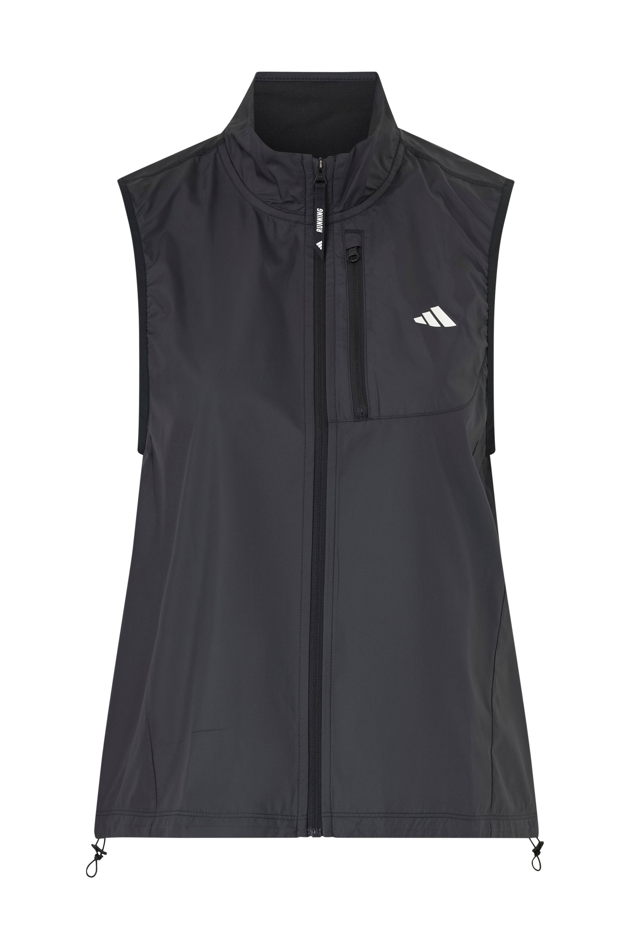 • Løbevest med opretstående krave• Lynlås foran• Brystlomme med lynlås• Justérbar søm med træksnørre og stopper• To baglommer med låg