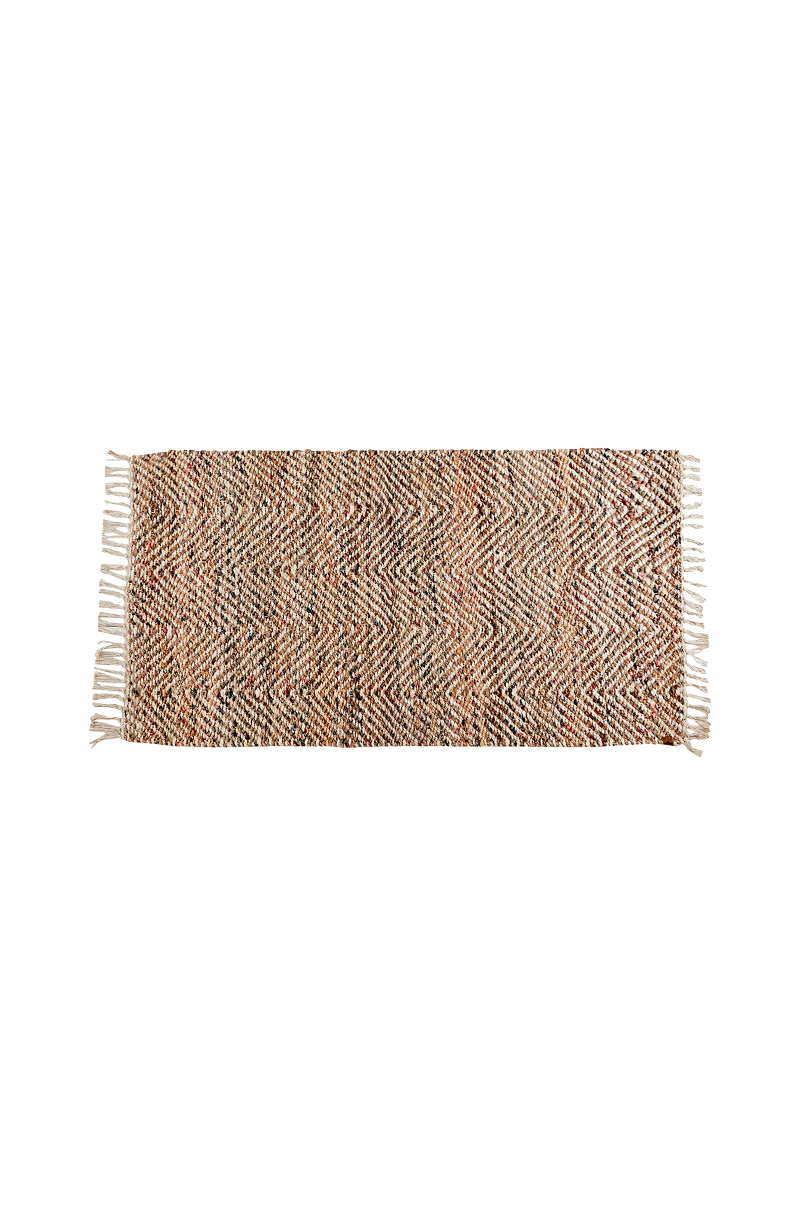 Smukt jutetæppe med farve, der skaber en hyggelig atmosfære i ethvert hjem. Tæppet har et hyggeligt look og frynser i begge ender.