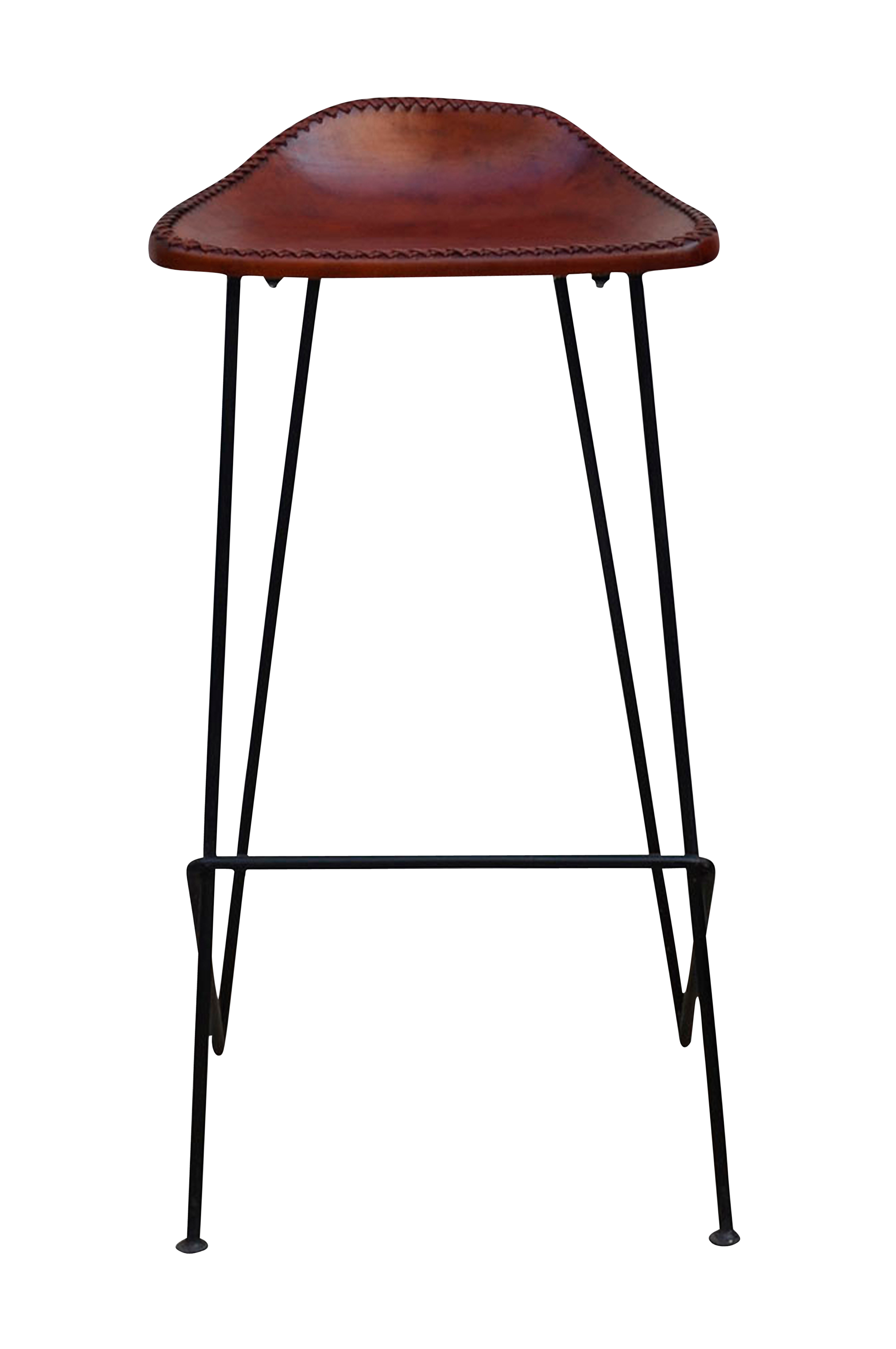 Barstol Bure i brunt læder med sorte jernben. Leveres samlet.