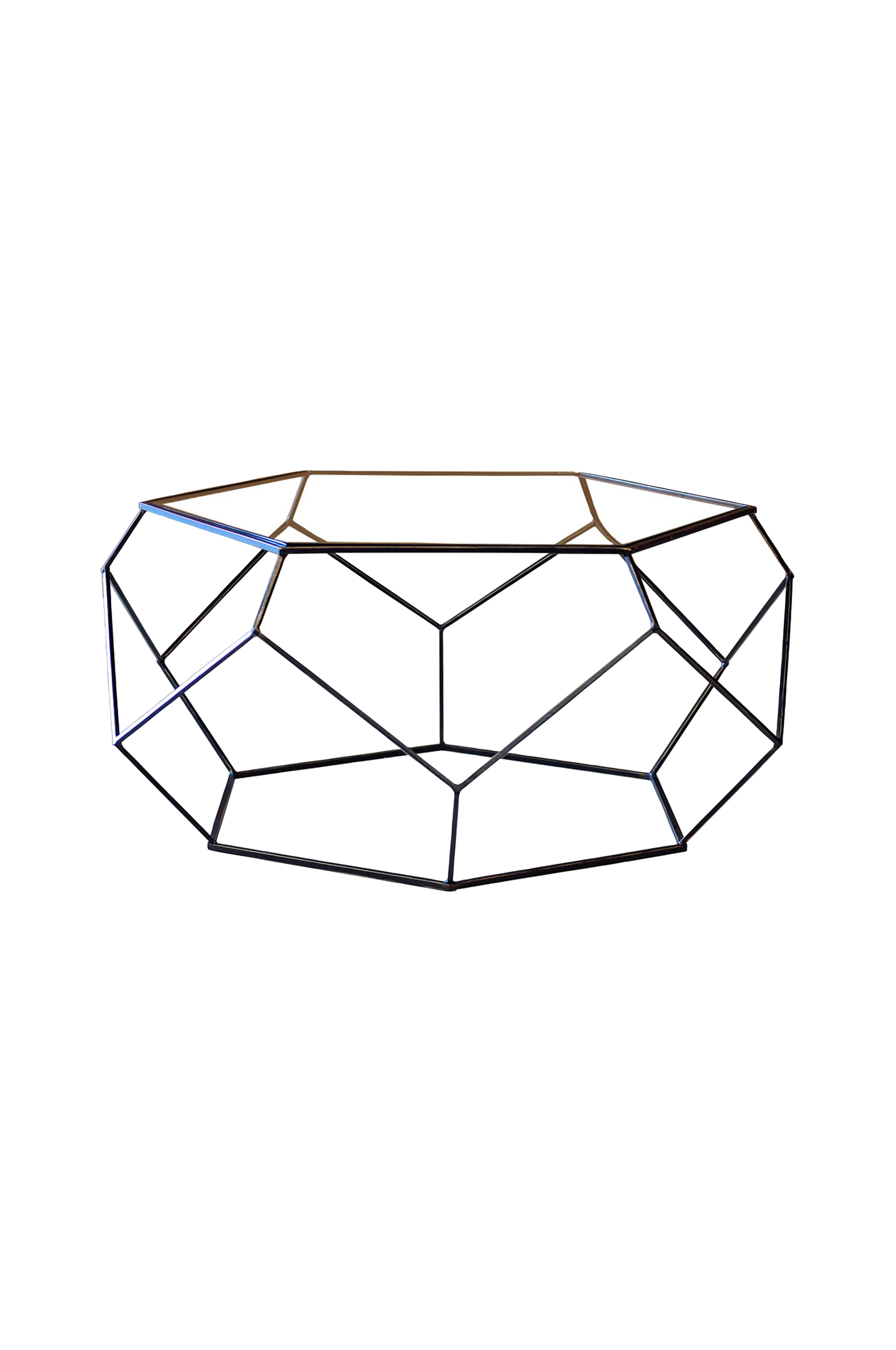 Sofabord Croix. Metal og bordplade i glas. 103 x 105, højde 46 cm.