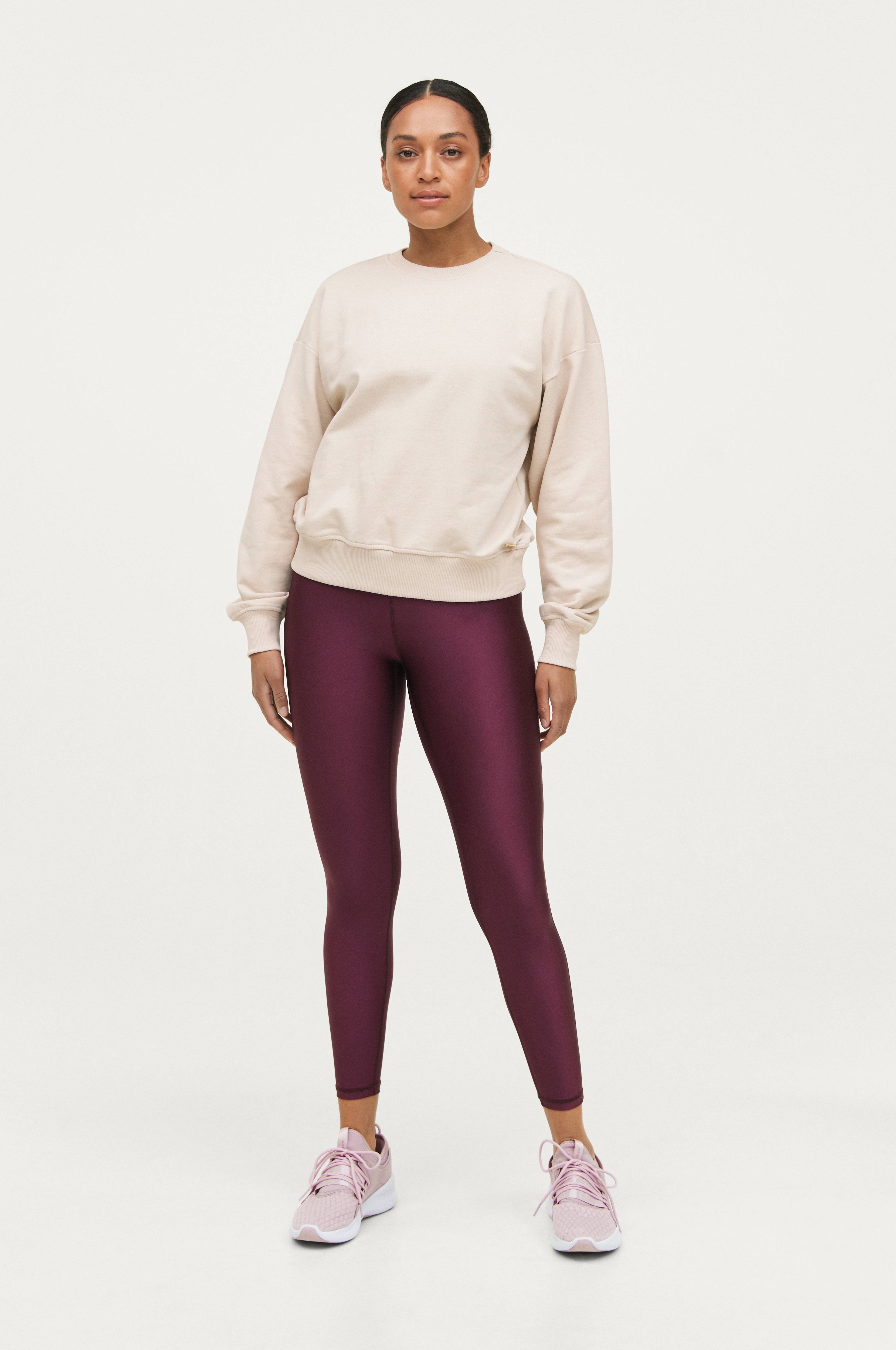 Træningstights i blankt stretchmateriale som er hurtigtørrende og transporterer fugt væk fra huden, så du holder dig tør og kølig under træningen. Bred, elastisk linning med mobillomme bagpå. Metallicprintet logo forneden på det ene ben og foroven bagpå.