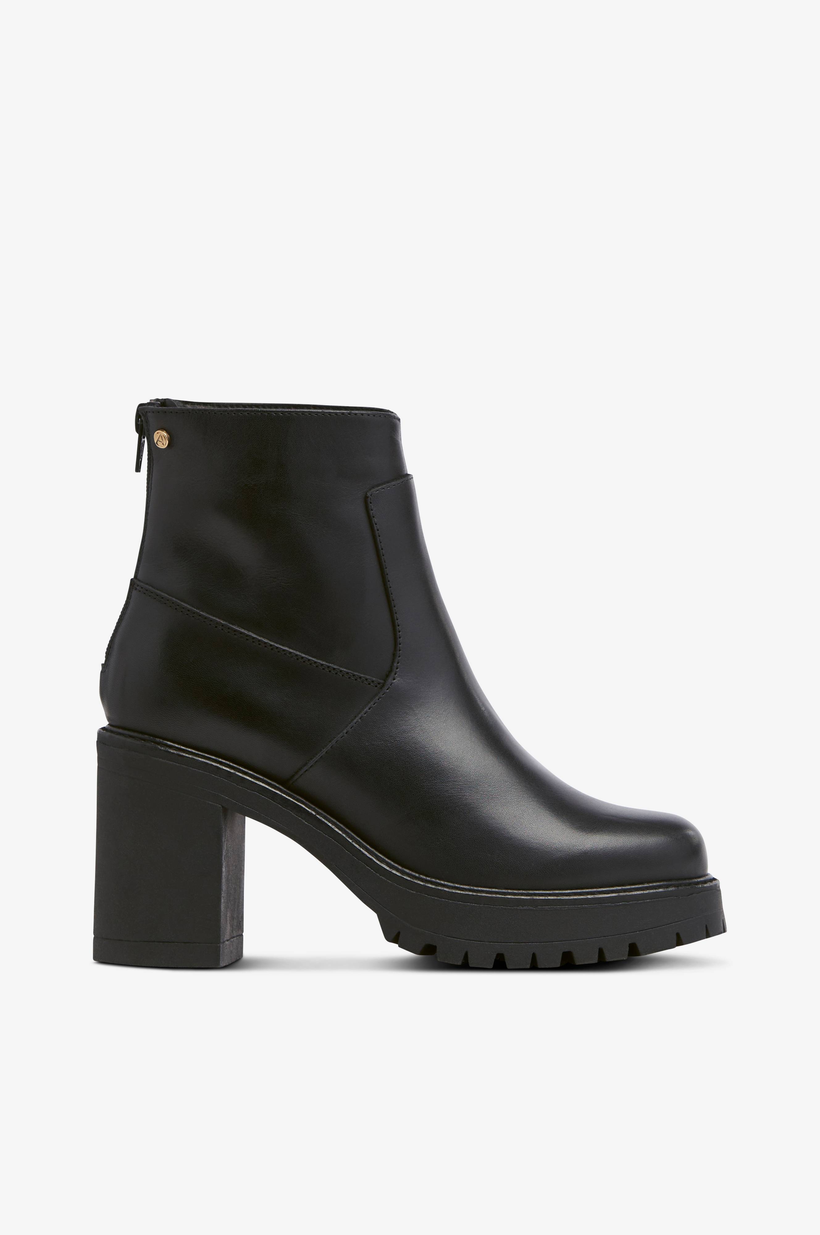 Boots Heavy Heel fra Agnes Cecilia. Model i skind med rund tå og høj sål samt høj hæl. Dekorative sømme på skaftet og lynlås bagpå. For i tekstil og indersål i skind.Skafthøjde ca. 13 cm. Hælhøjde ca. 9 cm. Sålhøjde ca. 2,5 cm.
