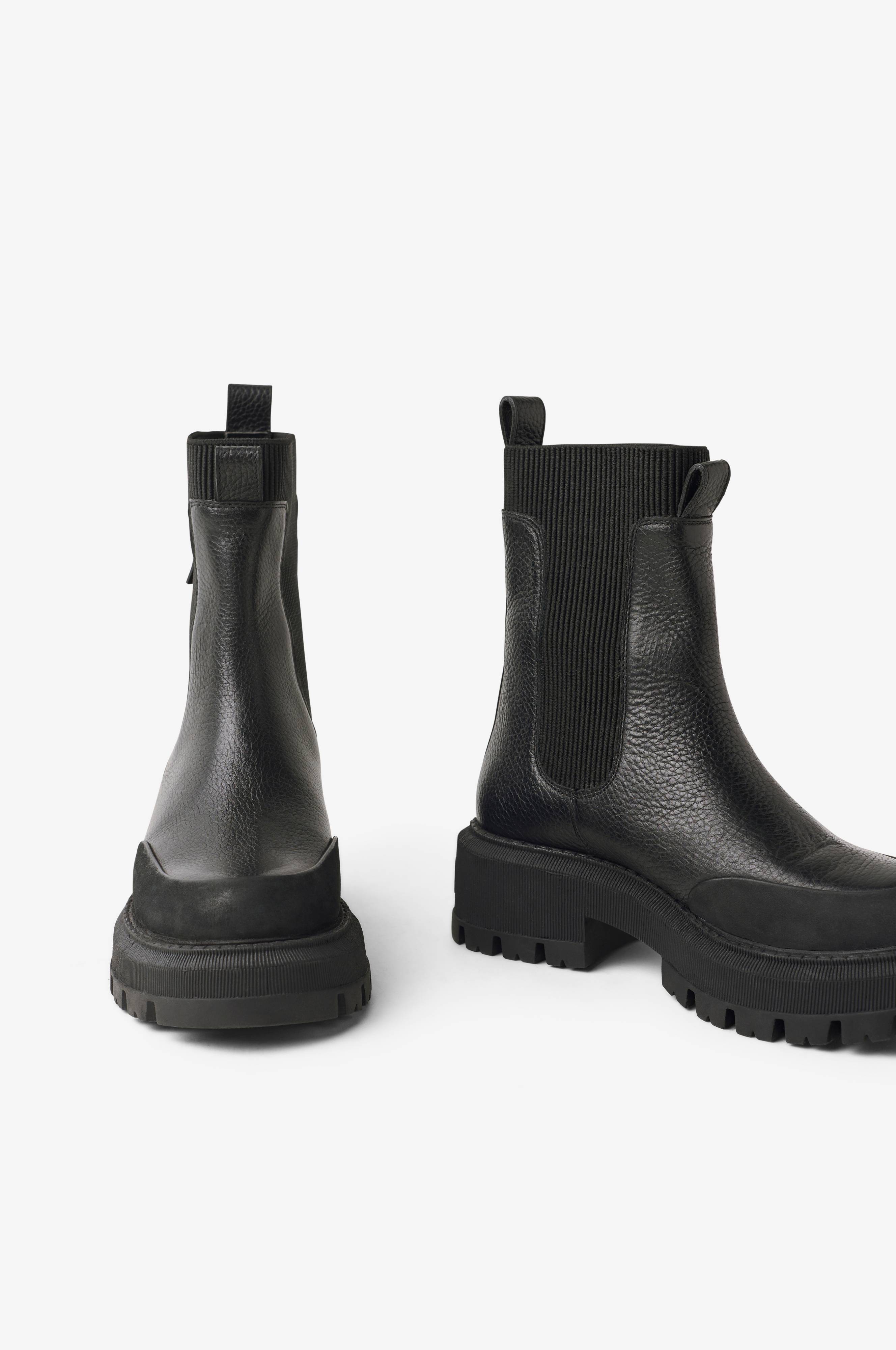 • Støvler i læder• Elastiske paneler på skaftet• Træksløjfer foran og bagpå• Tekstilforing• Høj, grovmønstret ydersål af gummi• Skafthøjde: 17,5 cm i størrelse 37• Hælhøjde: 4,5 cm• Sålens højde: 3 cm