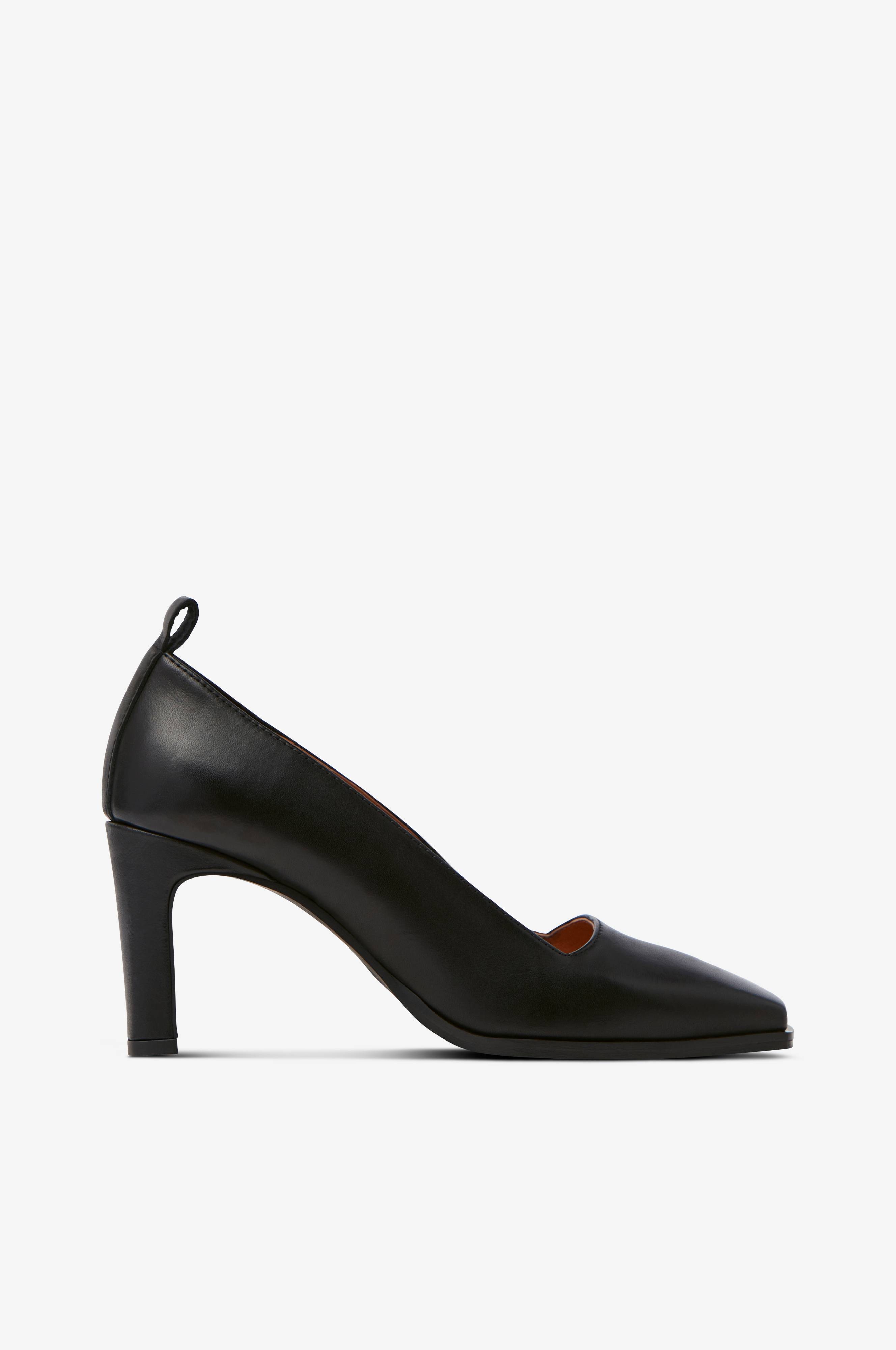 Pumps i skind med firkantet tåform og skindbetrukket hæl. Blødtpolstret, skindbetrukket indersål. Hælhøjde ca. 7,5 cm.