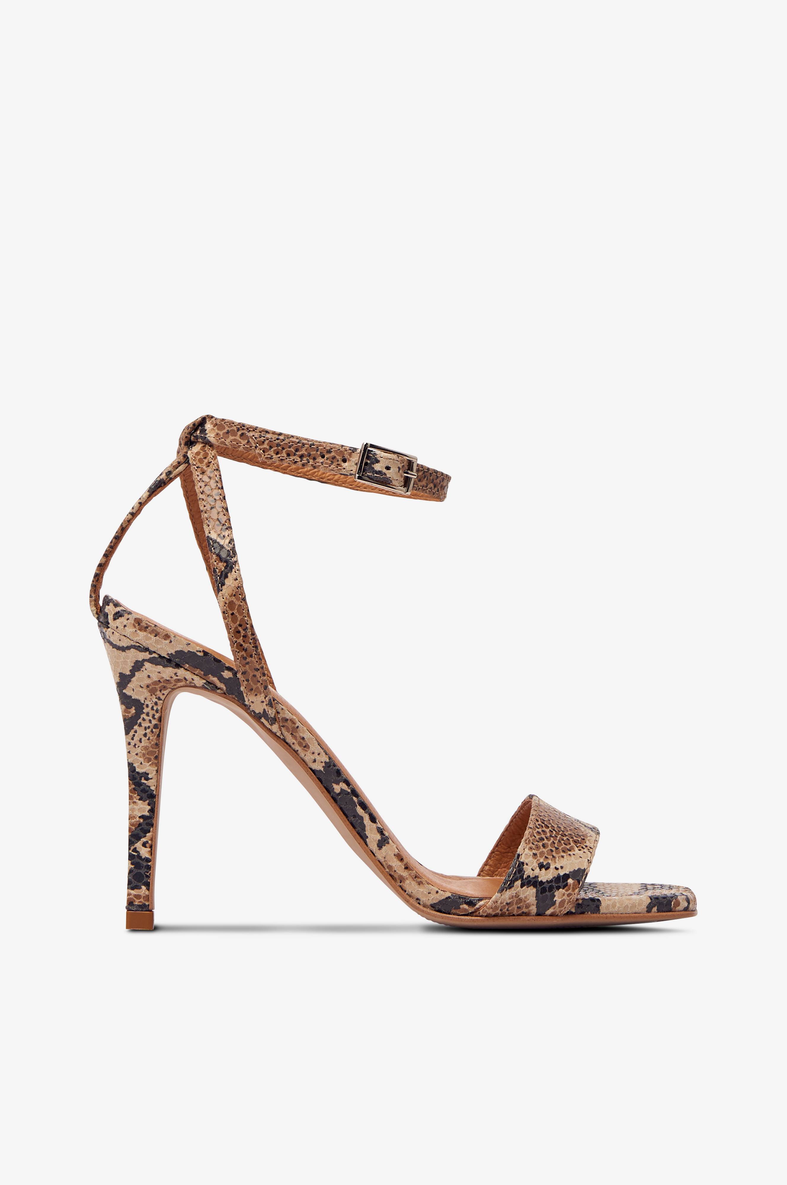 Sandal fra Agnes Cecilia i åben model med remme i blødt og smidigt skind. Remmen rundt om anklen justeres med lille, sølvfarvet metalspænde. Beklædt hæl. Hælhøjde ca. 11 cm.