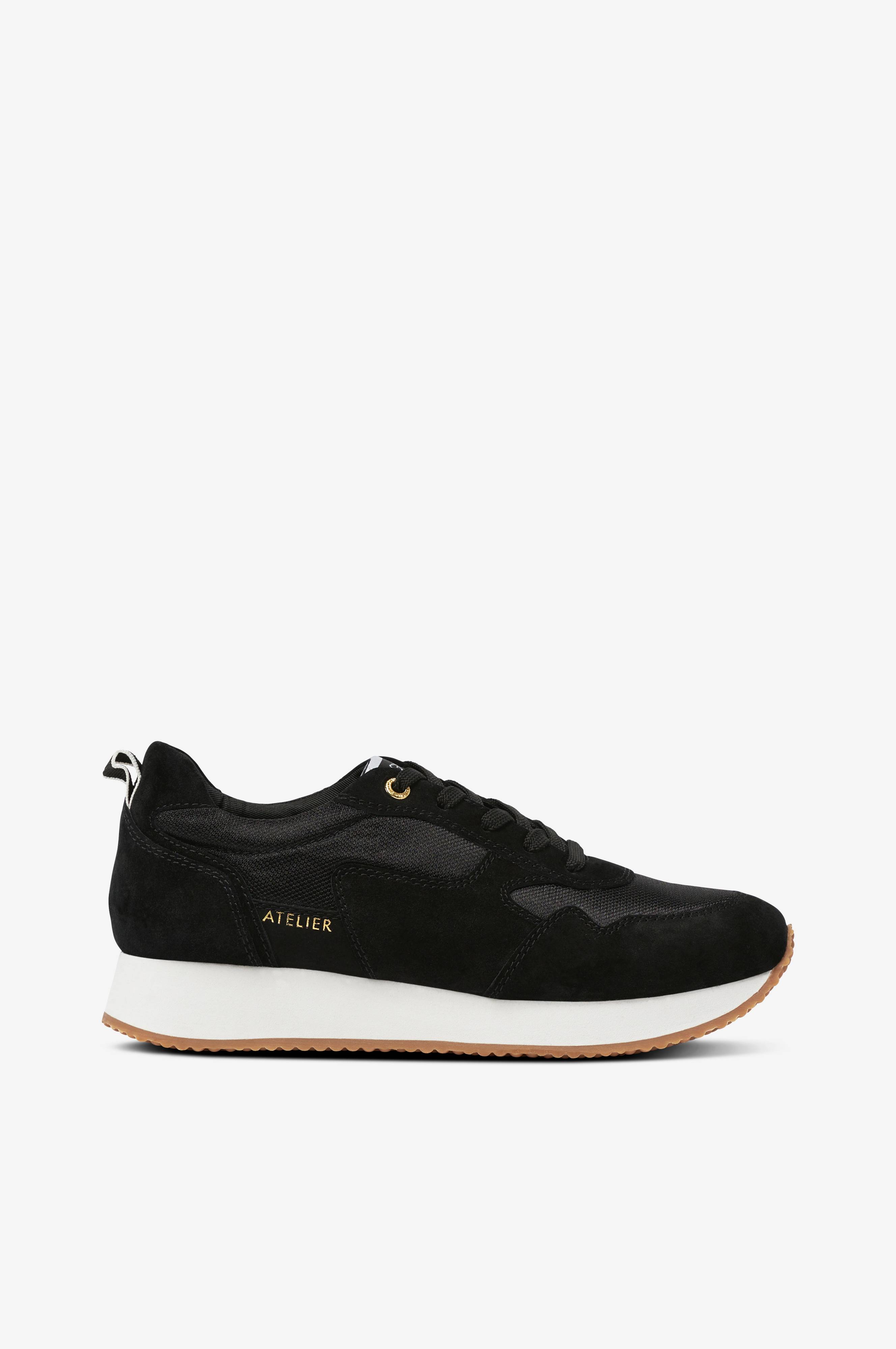 Klassiske sneakers med retrolook. Overdel i mesh og ruskind med lille, guldfarvet logo på siden. Noget højere sål giver den rette silhuet. Trækstrop bagpå. Sålhøjde bagpå ca. 3,3 cm.