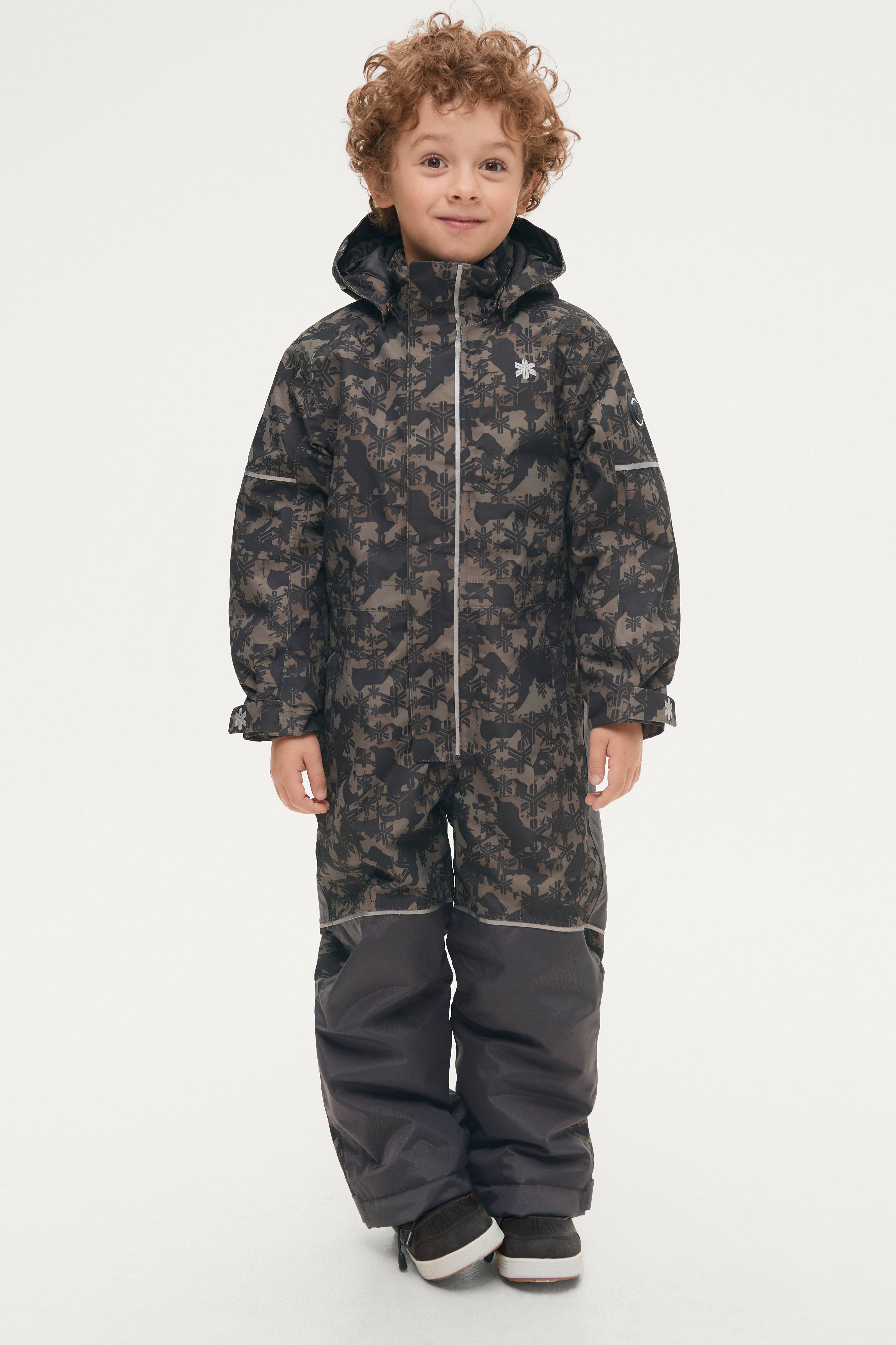 Aftagelig og justerbar hætte med elastik i forkanten. Høj krave med blød fleece på indersiden. Lynlås og beskyttende overfald med velcrolukning. To lommer foran med lynlås og håndvarmerfor. Regulerbar vidde i taljen. Regulerbar ærmekant med velcro og en indvendig ribkant i stretchjersey som slutter tæt om håndleddet. Elastisk snefang i benkant med antislip-bånd på indersiden som holder dem på plads. Regulerbar vidde i benkant og elastiske fodstropper. Refleksstriber rundt om.
