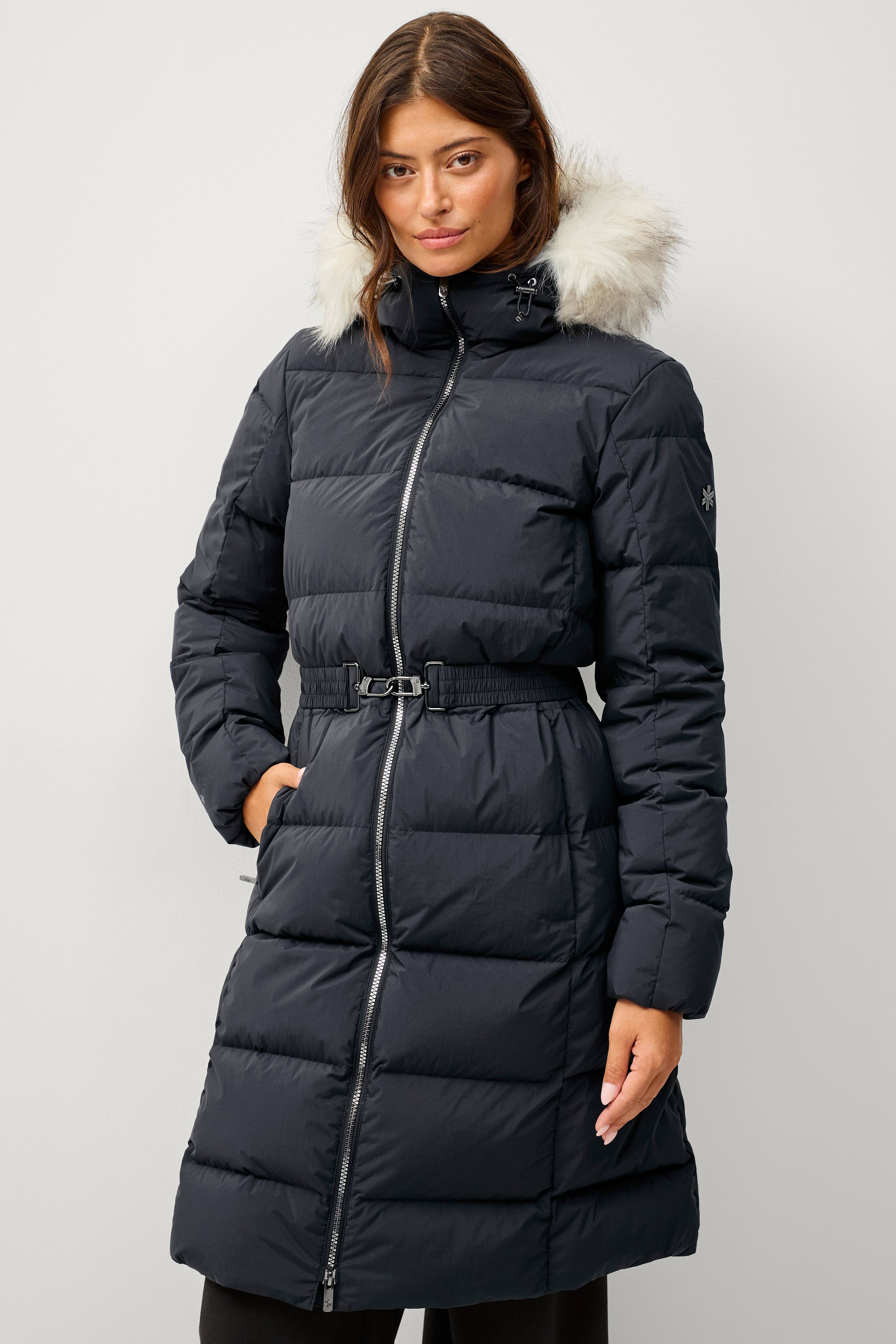 • Let, varm dunfrakke med feminin form
