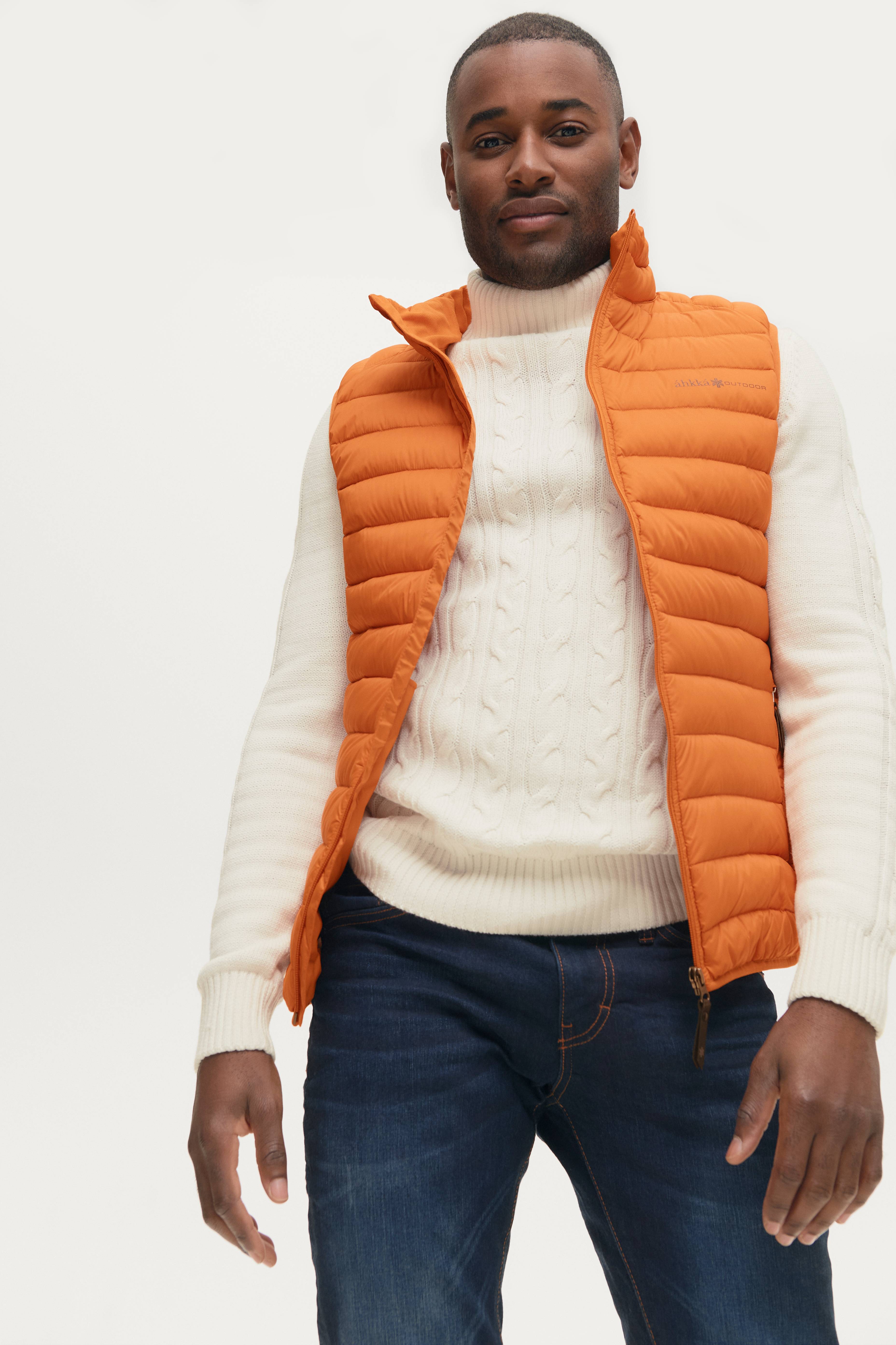 En let, quiltet dunvest som kan bruges efterår/forår som et forstærknings- og/eller varmelag. Om vinteren kan den bruges som et varmende lag under f.eks. en skaljakke. Blød og let fyld af dun og fjer som giver meget god varmeisolering. Elastiske kantbånd i ærmegab og forneden, hvilket giver dig øget bevægelsesfrihed og komfort. Høj krave med børstet polyester på indersiden. Lynlås med hagebeskytter. Lommer i siderne med lynlås. Længde ca. 66 cm i str. M.