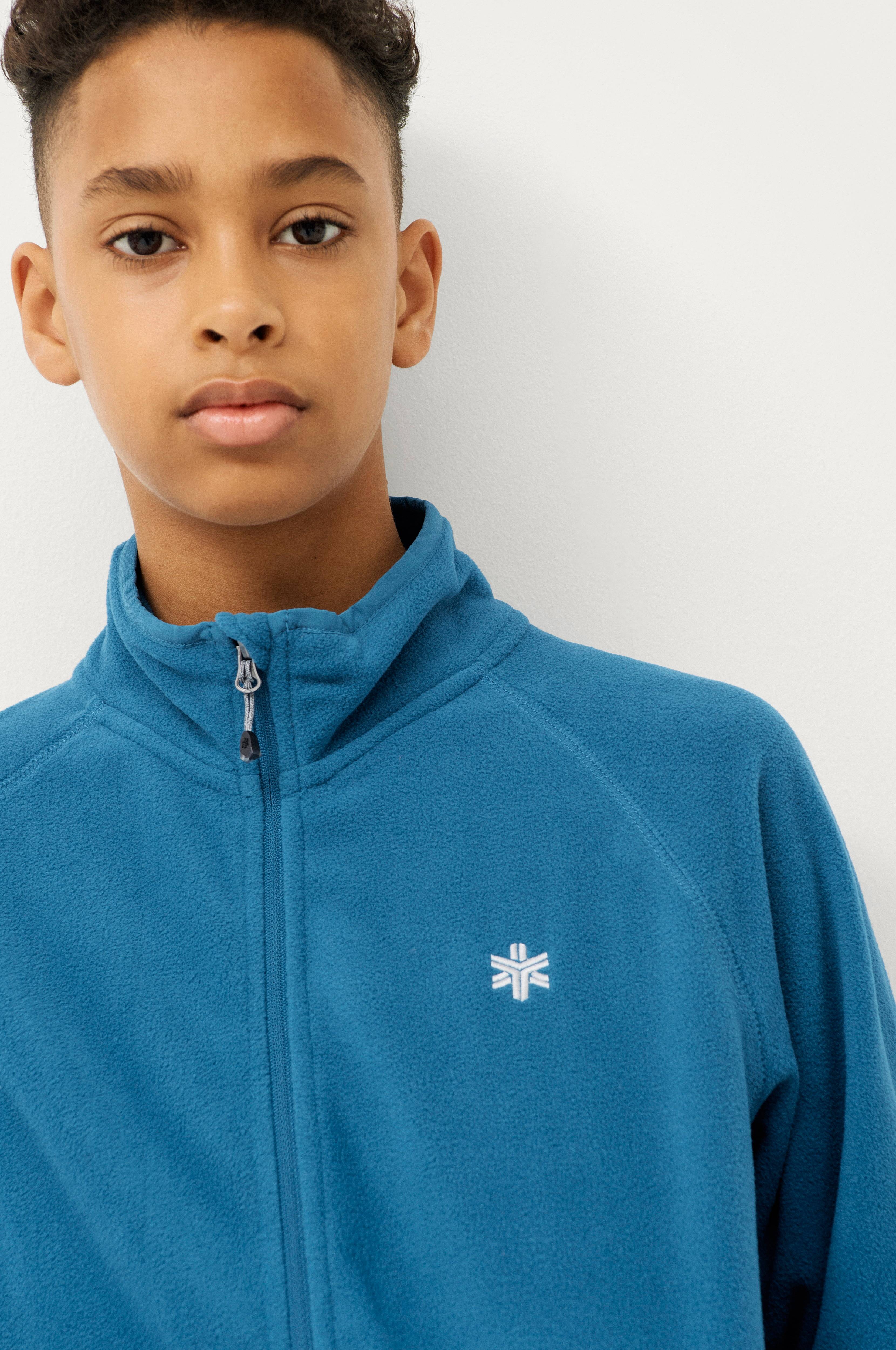 En praktisk fleecetrøje fra Áhkká i microfleece som varmer og leder fugt væk. Blød inderside. Høj krave og gennemgående lynlås med hagebeskytter. To lommer med lynlås. Broderet logo på brystet. Lag 2.