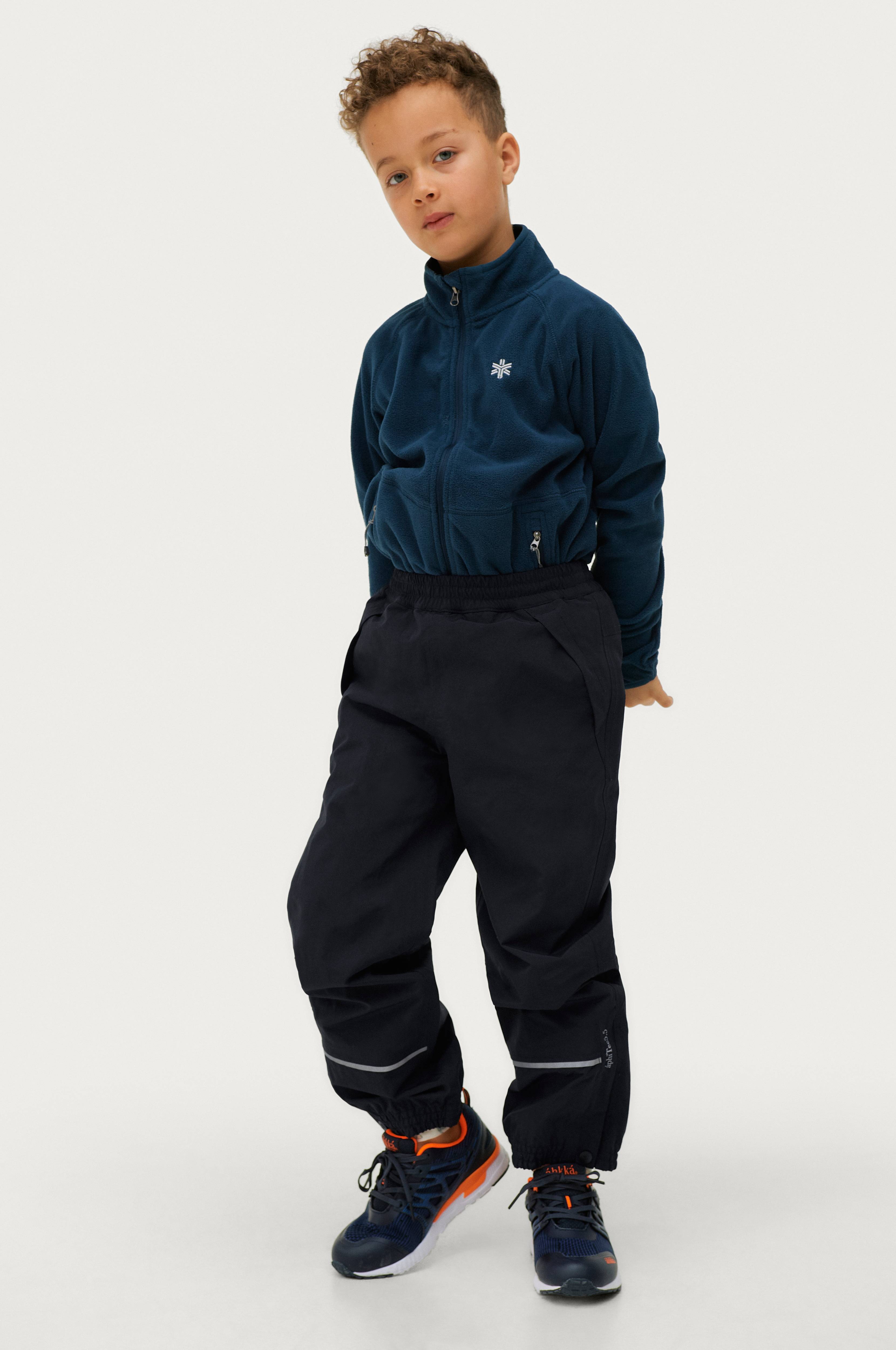 Slidstærke, vandtætte overtræksbukser/skalbukser fra Áhkká i det vævede, smidige funktionsmateriale áphiTec 5.5, vandsøjletryk 5000 mm og med en åndbarhed på 5000 g/m2/24h. Alle sømme er tapede. Elastisk linning som har en indvendig løbegang med stop. To lommer foran. Refleksdetaljer forneden på begge benene. Elastik i benkanten. Benkanten kan åbnes med velcro og trykknap og har en kile bagved, så det er lettere at trække bukserne over skoene.