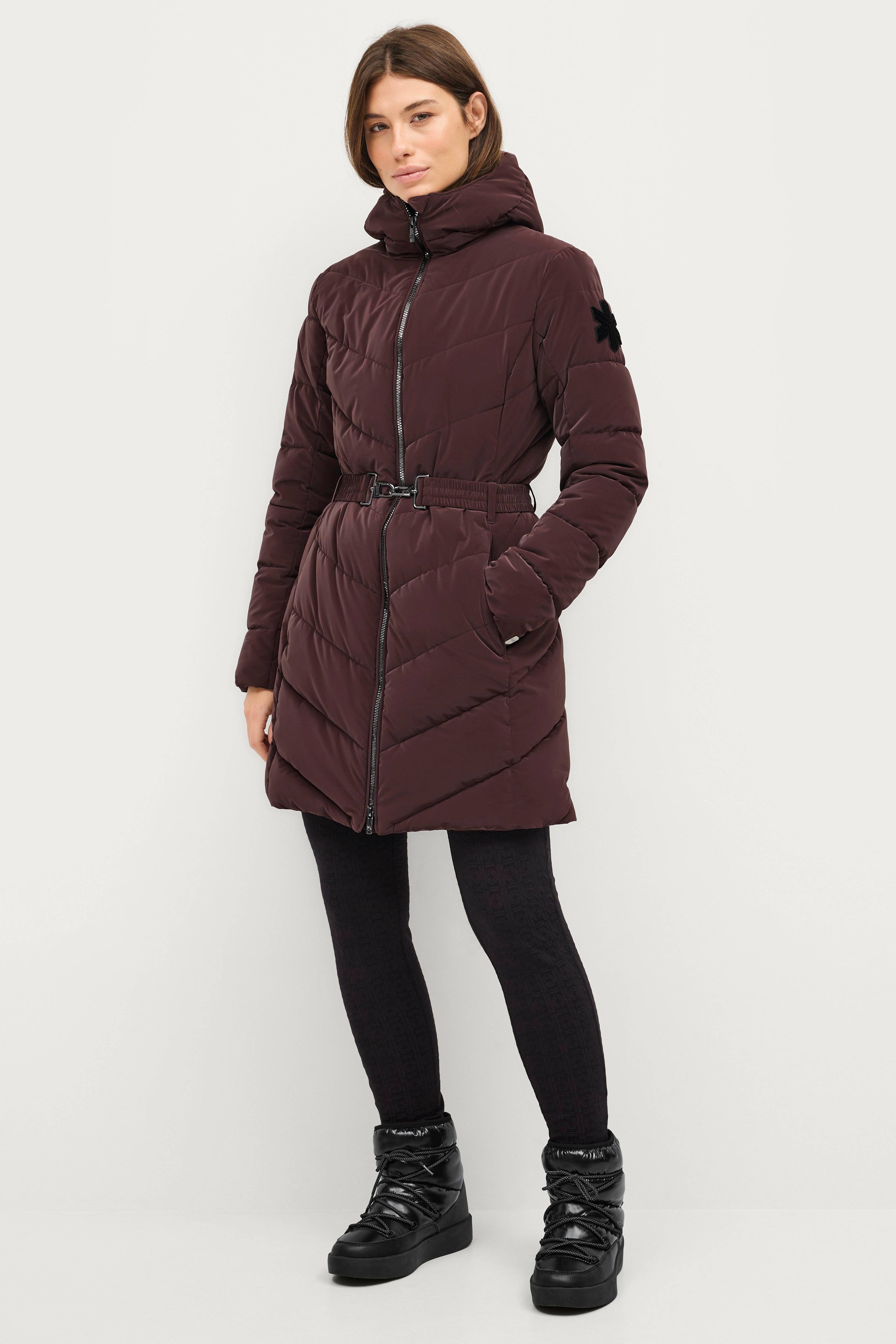 Vatteret jakke i figursyet, noget længere model med vind- og vandafvisende yderstof og en luksuriøs, velourlignende overflade.