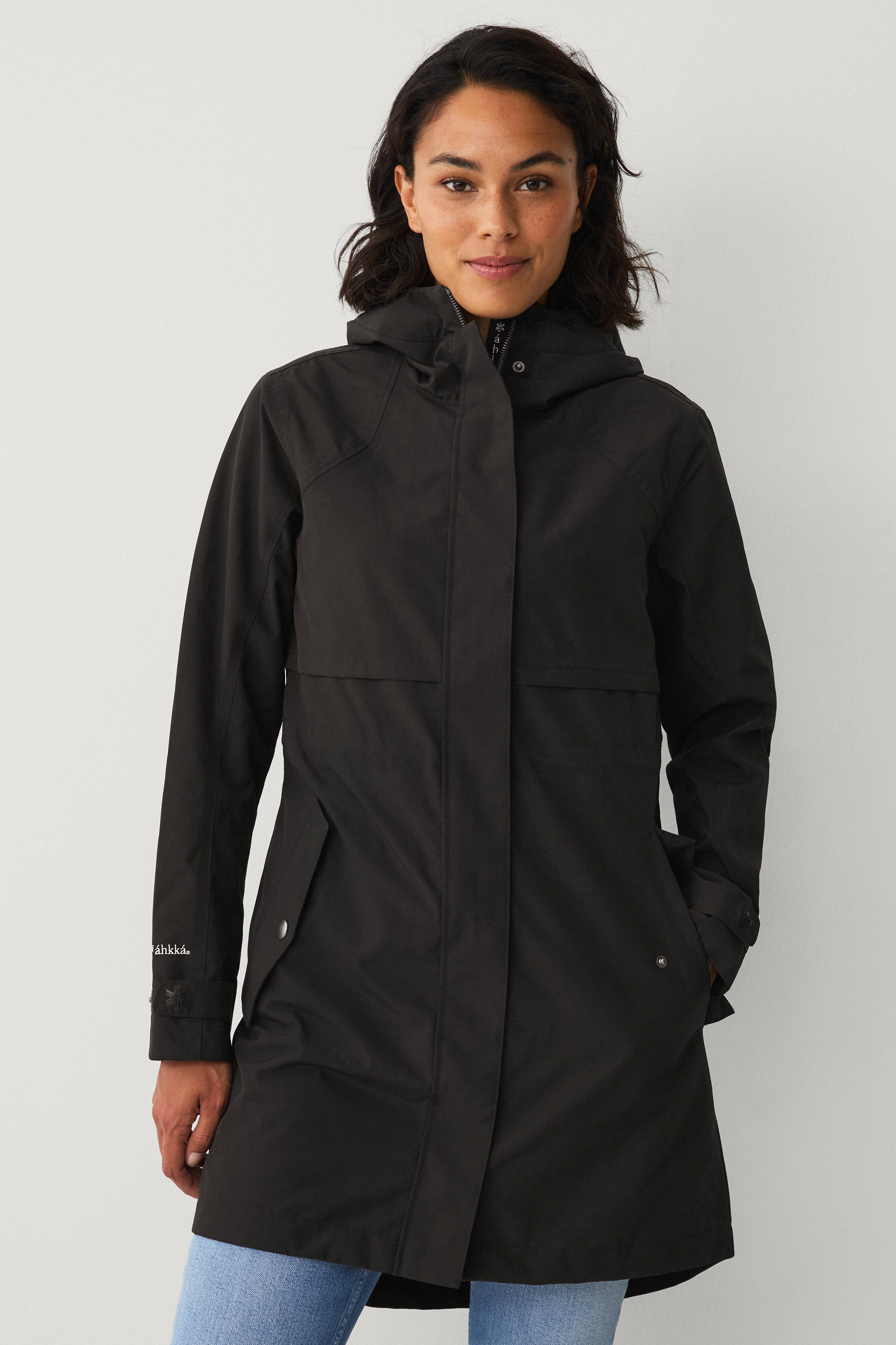 Flot og enkel. Lidt stram over brystet, men rummelig over hofterne. Godt med knapper ved ærmeslutningerne i stedet for velcro, som jeg synes sætter sig fast i alt. Flot med snøre i taljen.…