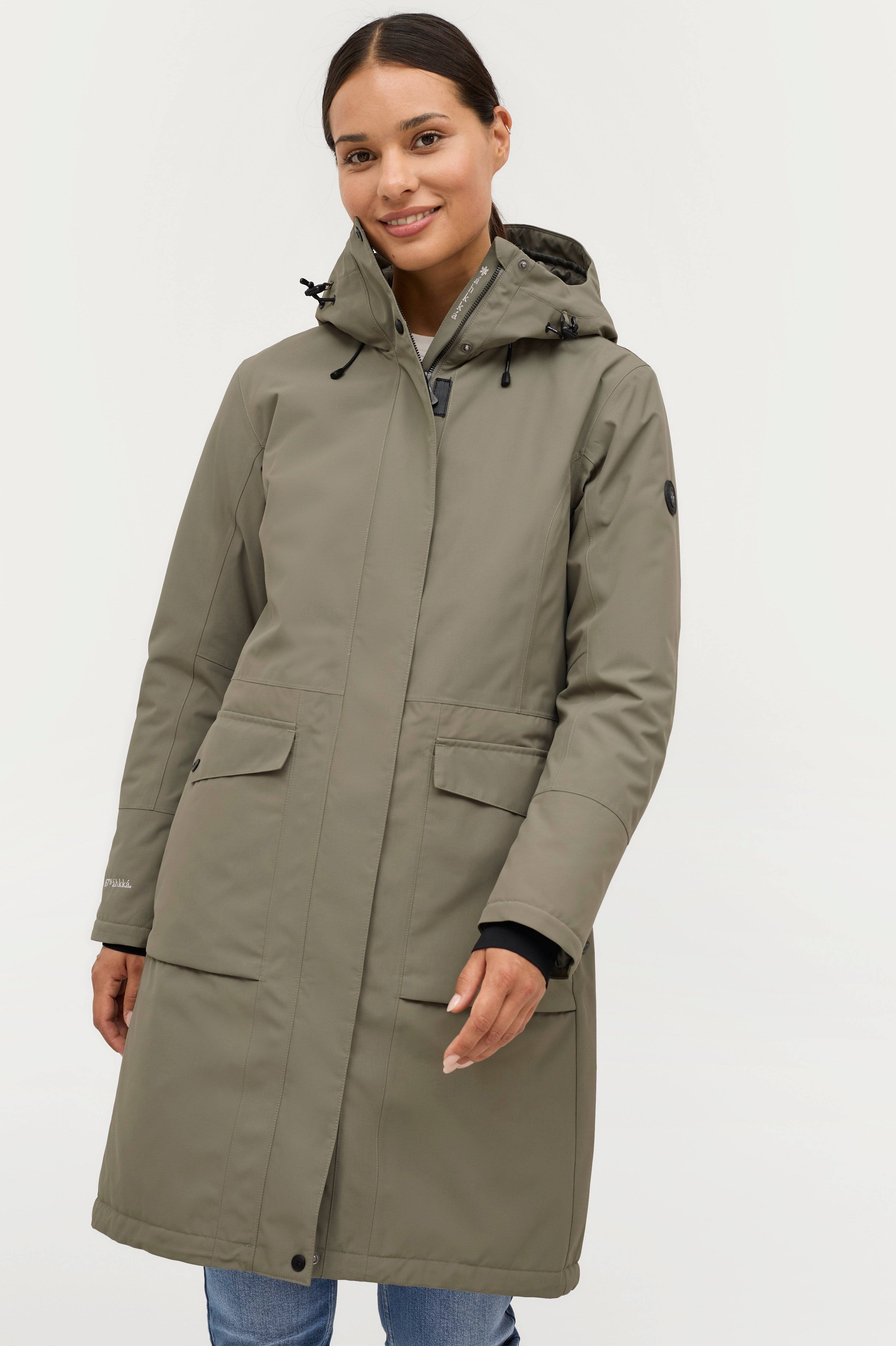 Vatteret parka fra áhkká i let og smidig model som varmer skønt på kølige dage. Blødt, slidstærkt yderstof med mat overflade. Stoffet er vind- og vandafvisende, 3000 mm vandsøjletryk og åndbarhed op til 3000 g/m2/24h. Tapede sømme på udsatte steder. Fyld af et let og blødt syntetmateriale med gode varmende egenskaber.