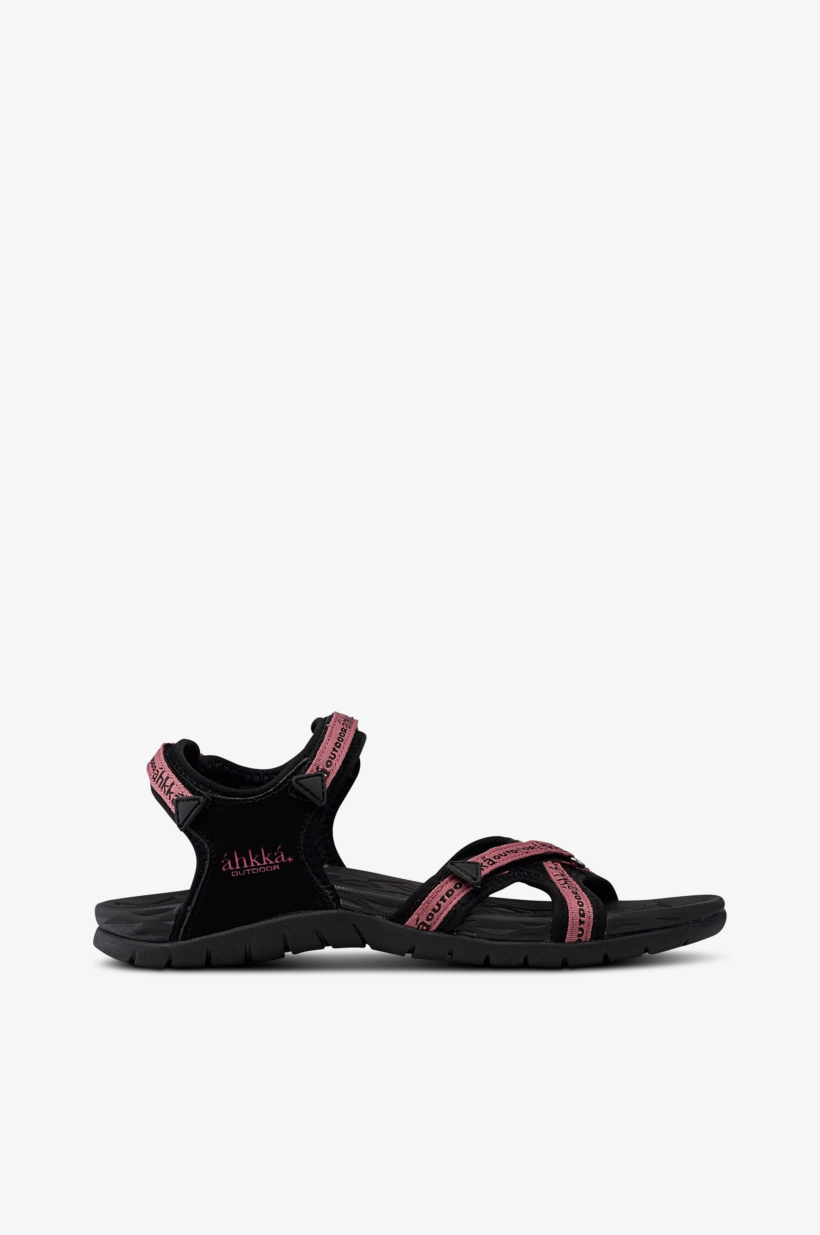 Sportssandaler Hiking fra Áhkká i ruskind og tekstil med velcroremme som giver støtte og komfort. Behageligt fodformet sål og mønstret ydersål med godt greb.