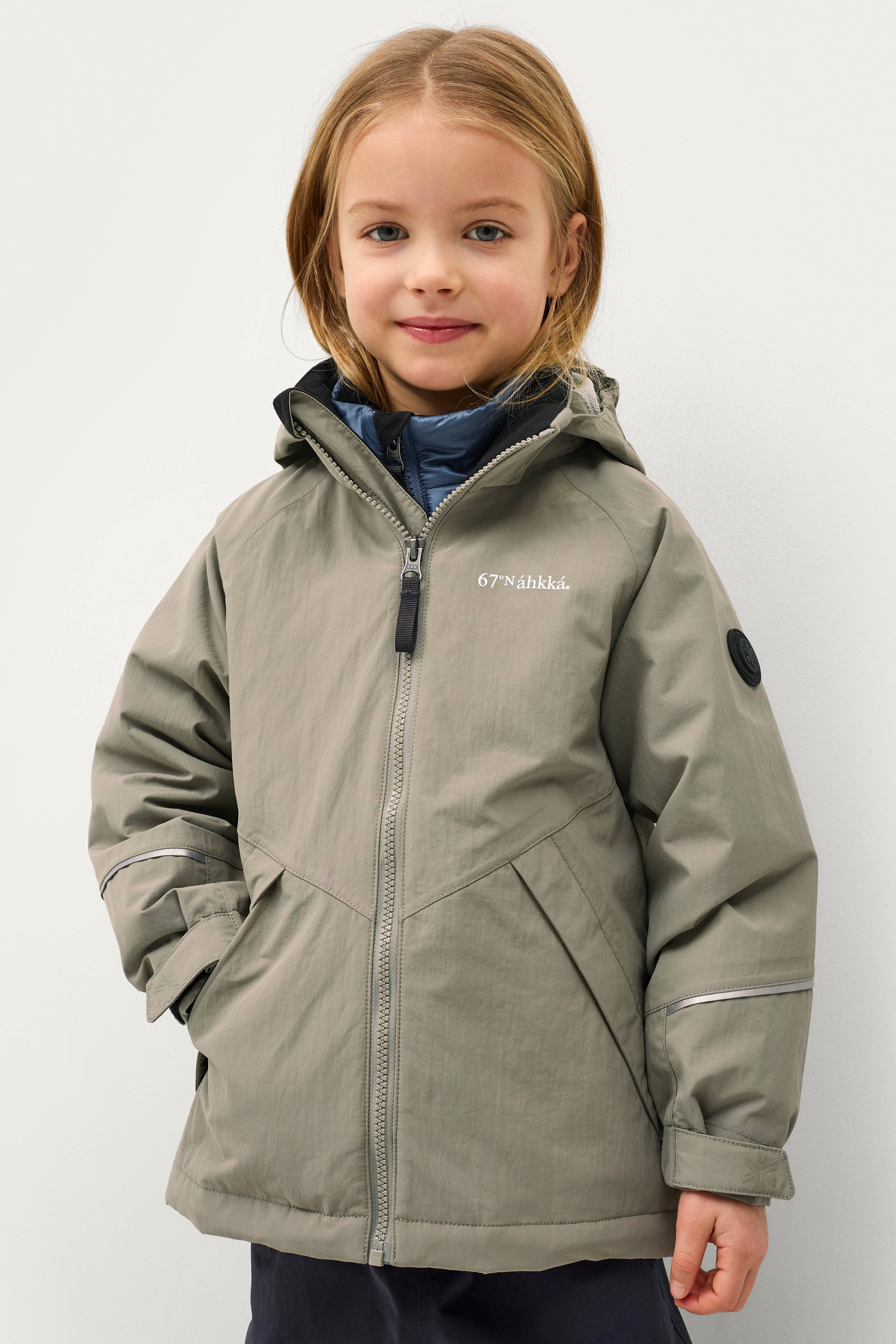 • Jakken kan kombineres med den lette Liner Jkt Kids-jakke fra Áhkká. Med denne kombination får du en varm foret jakke, der er tilpasset til køligere vejr.
