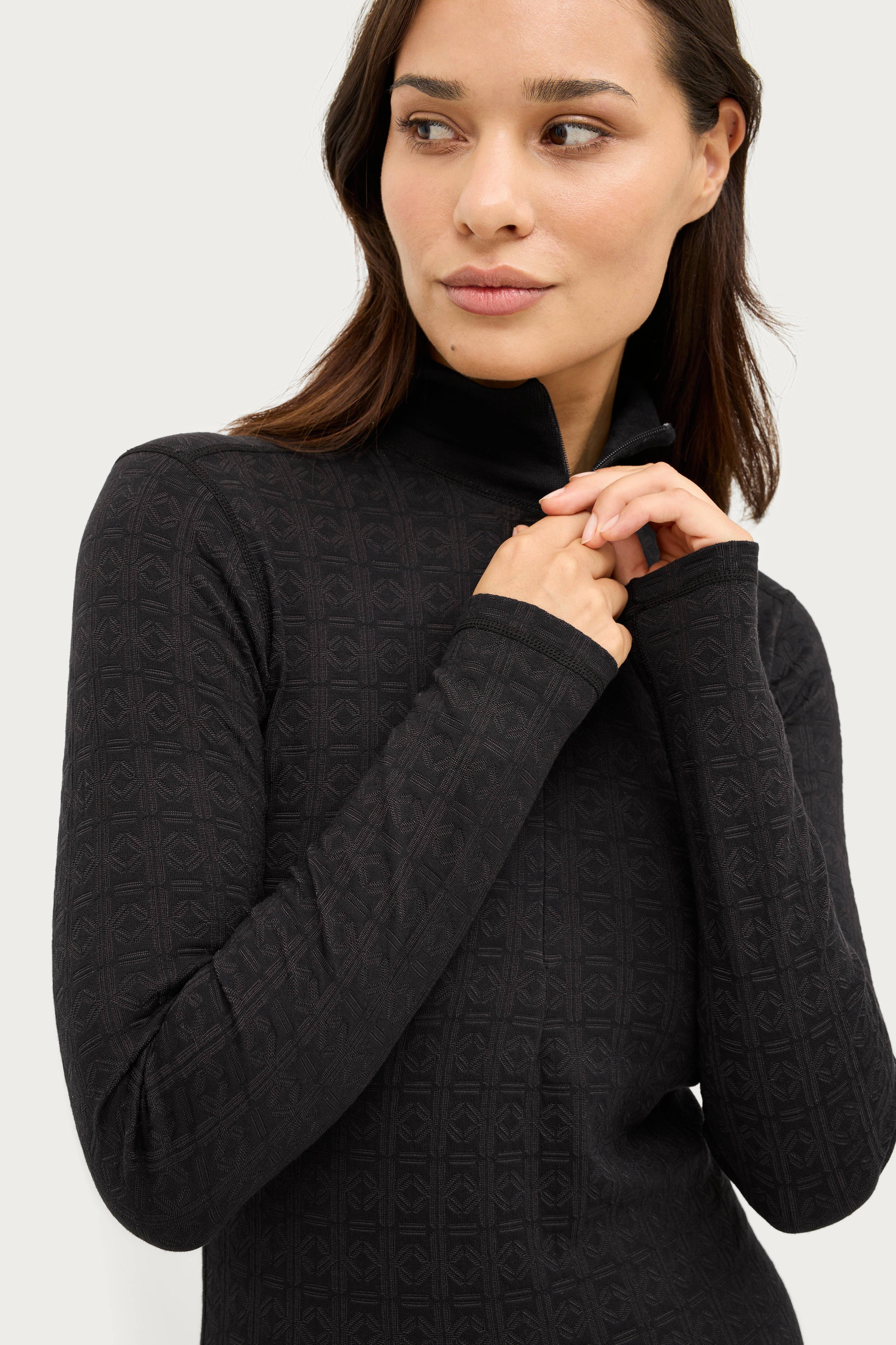 • Elastisk, hurtigtørrende materiale• Høj, ribbet krave• Kort lynlås• Bløde flatlock sømme• Funktionel, blød lyocellkvalitet, der holder dig tør, frisk og varm eller kold (afhængigt af omgivelserne) kombineret med polyester.