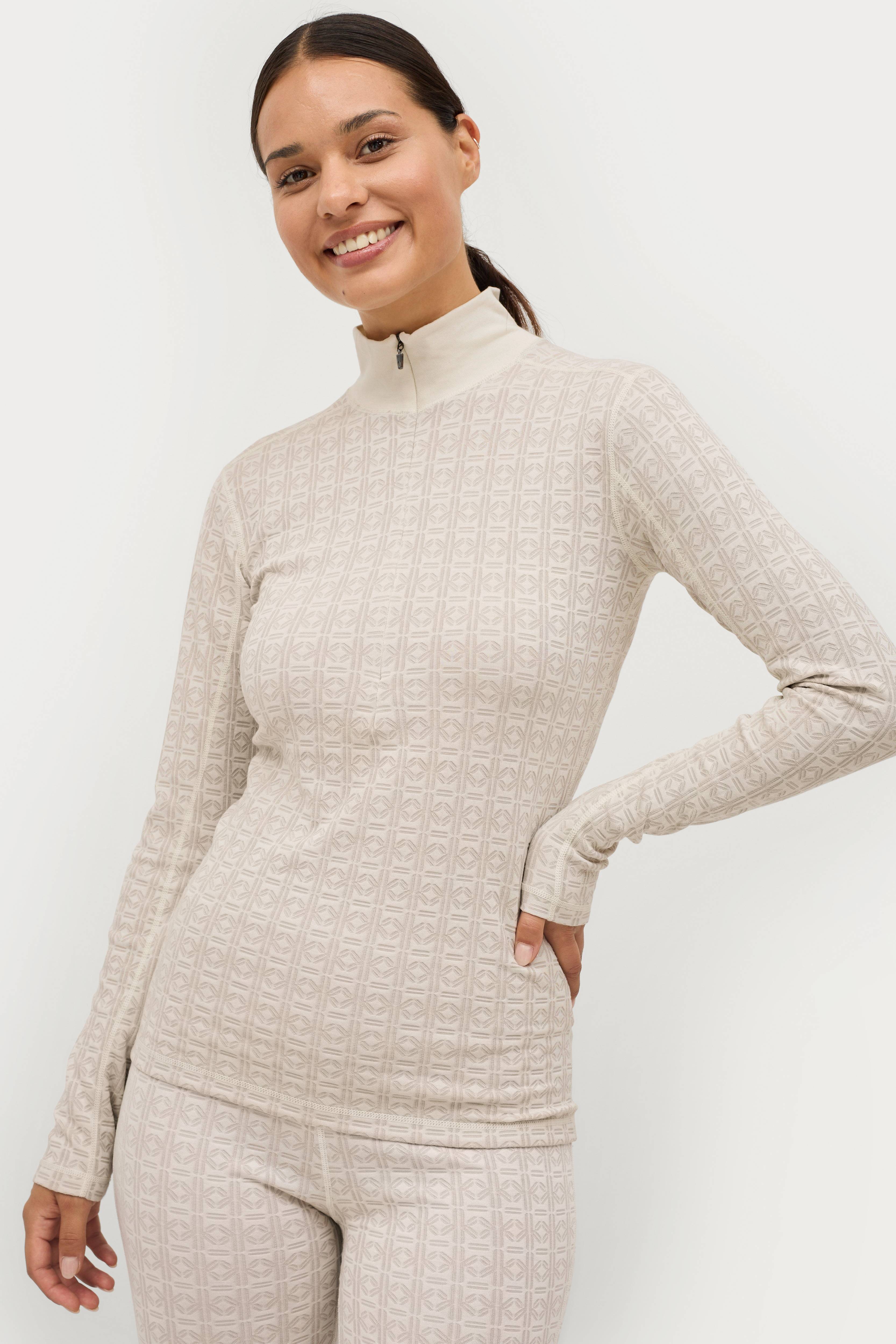• Elastisk, hurtigtørrende materiale• Høj, ribbet krave• Kort lynlås• Bløde flatlock sømme• Funktionel, blød lyocellkvalitet, der holder dig tør, frisk og varm eller kold (afhængigt af omgivelserne) kombineret med polyester.