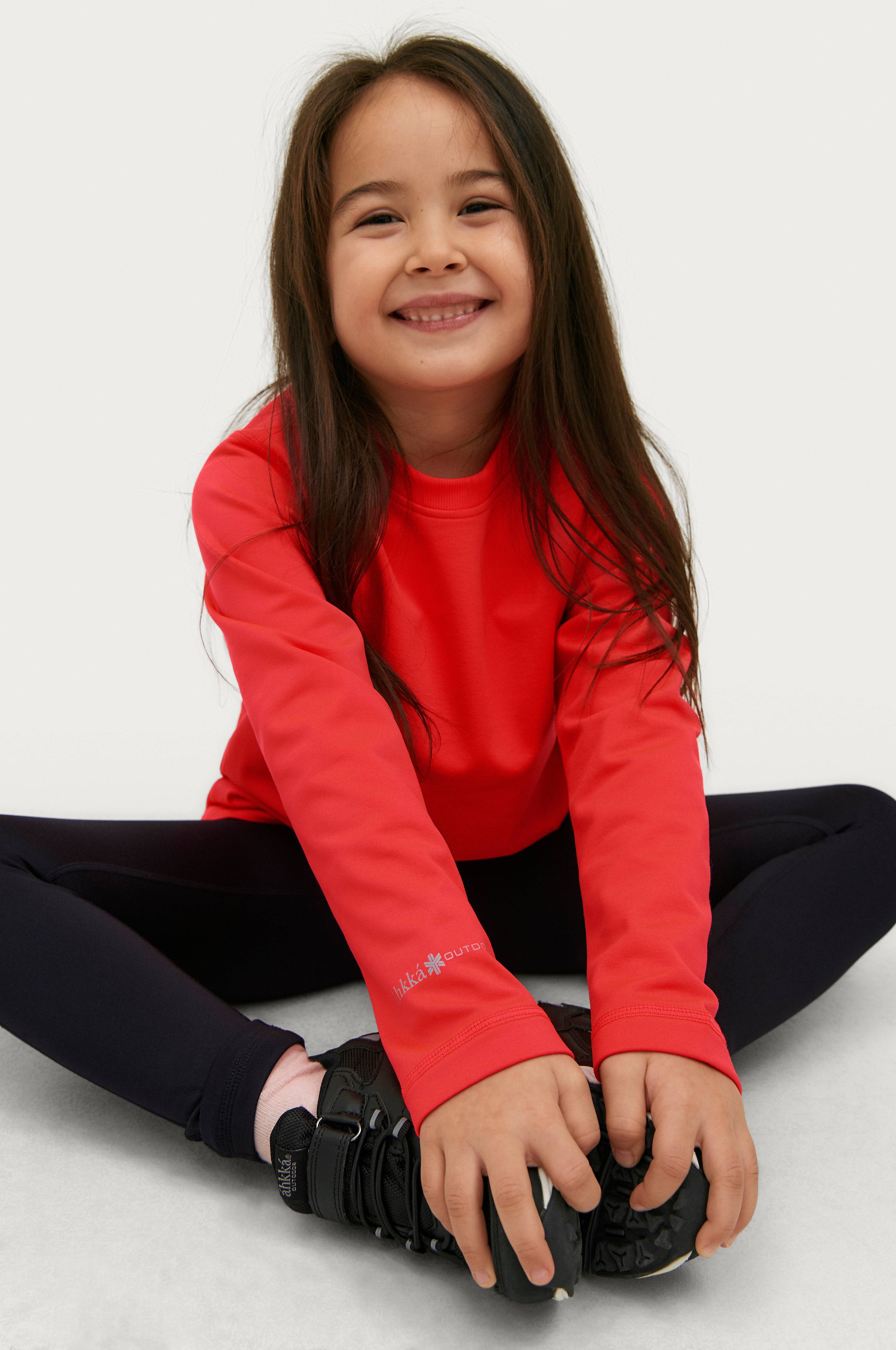 Trøje i funktionsmateriale med stretch og varmende, børstet inderside. Den fungerer både som træningstrøje udendørs i køligere vejr eller som en varmende undertrøje. Rund hals og refleksprintede detaljer.