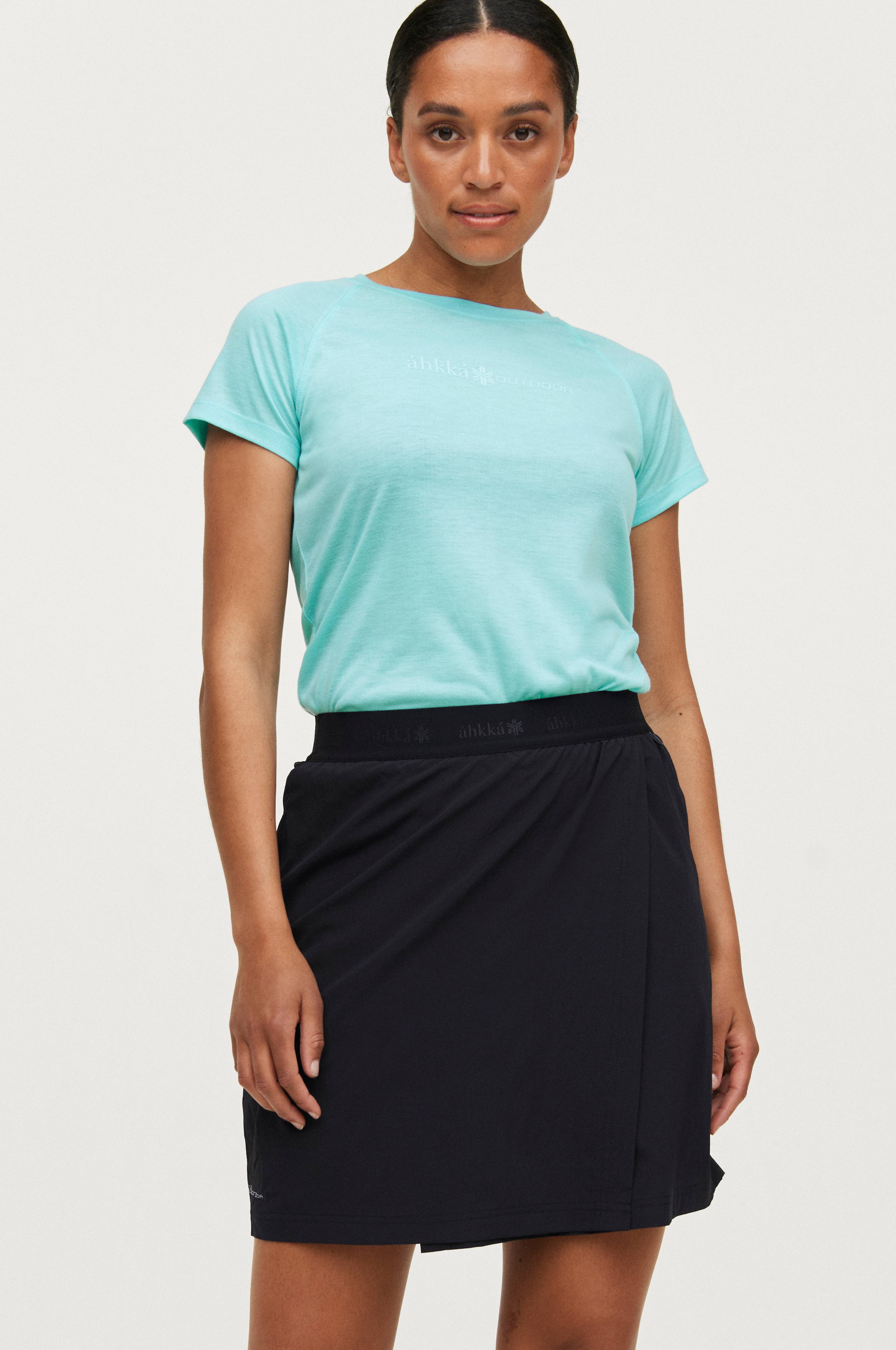 Kort trekkingnederdel fra Áhkká, en funktionel nederdel i vævet, meget let kvalitet som giver skøn komfort. Slå-om-effekt foran. Inderbuks i smidig stretchjersey. Nederdelen er i hurtigtørrende áphiTecQuick-stof. Perfekt friluftstøj, når du vil have noget let på udenfor, men alligevel være aktiv på f.eks. kajak- eller vandreturen. Elastiklinning. To lommer med lynlås. Længde ca. 49 cm i str. 36.