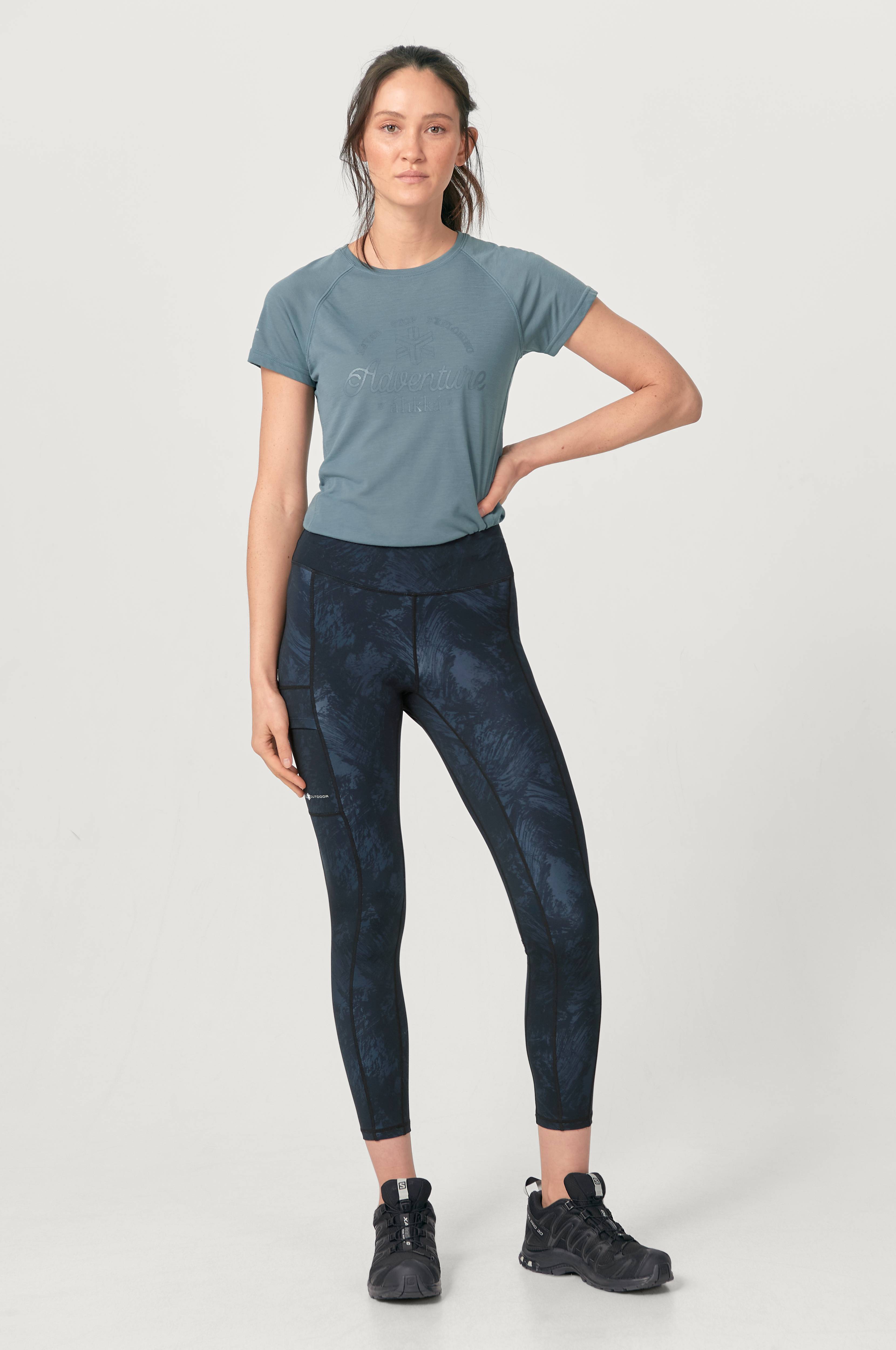 Trekkingtights fra Áhkká med printet mønster tone-i-tone. Skønne og praktiske tights til vandreturen eller løbeturen i skoven. Tightsene er i et kraftigt og skønt tætsiddende funktionsmateriale med stretch som transporterer fugt væk. Elastisk linning med indvendig løbegang. En beskyttet lomme foroven på højre ben til f.eks. mobilen. Bløde, flade flatlocksømme minimerer risikoen for gnavesår.