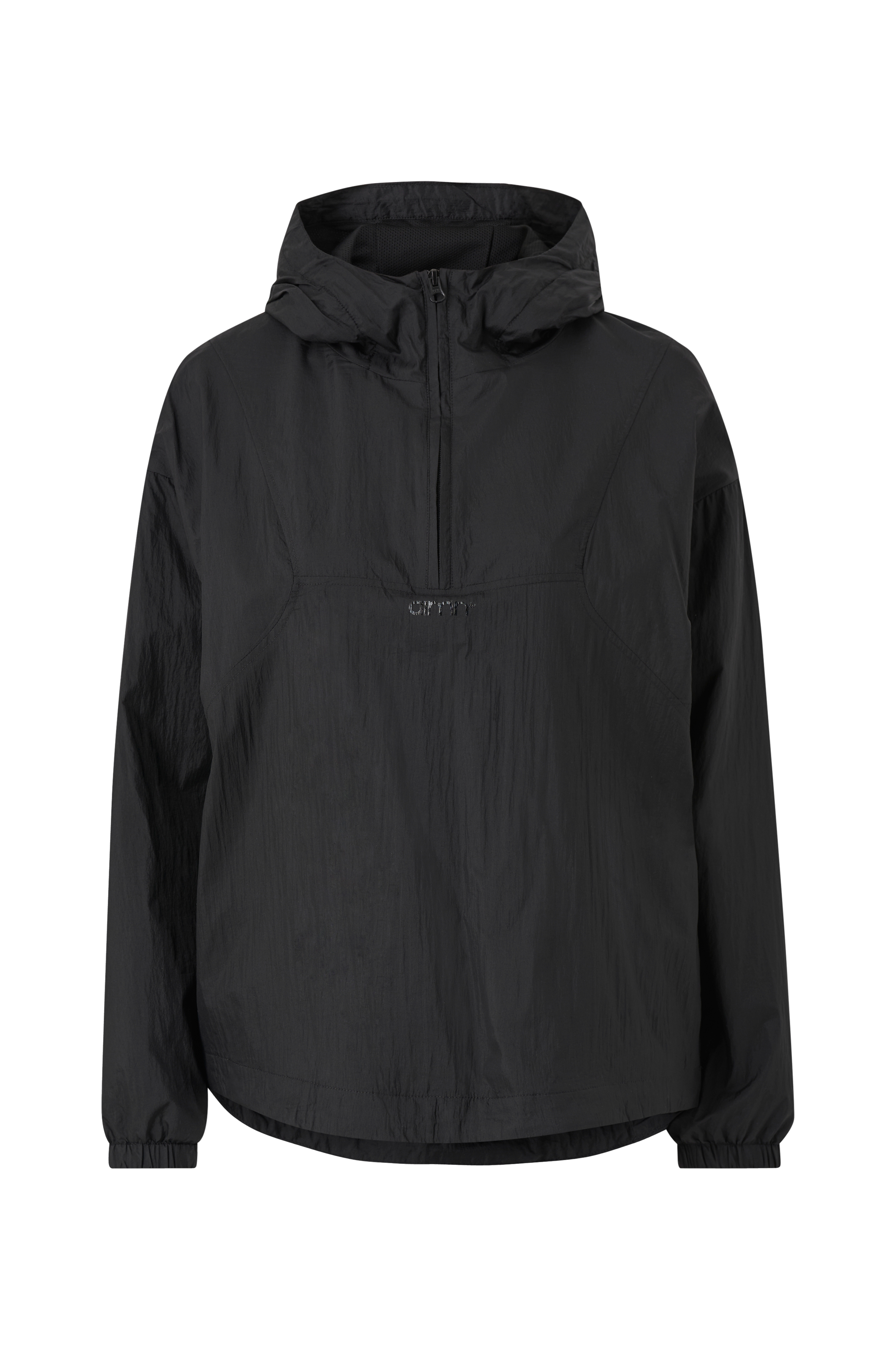 • Let, vandafvisende anorak• Fast hætte• Halvlang lynlås• Elastisk bånd ved manchetterne• To lommer med lynlås• Træksnørre ved nederste kant• Løstsiddende linning bagpå med ventilerende meshfor• Længde: 72 cm i størrelse S
