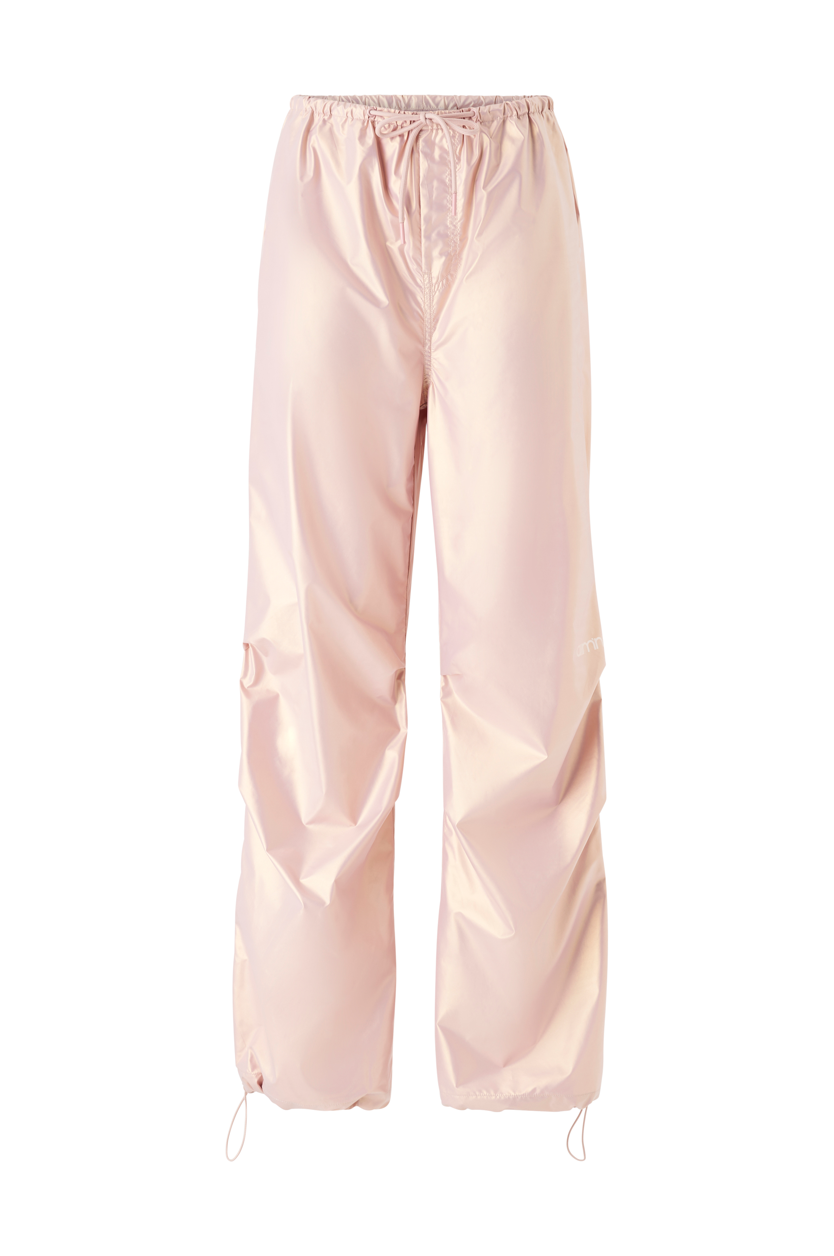 • Skinnende materiale• Løs pasform• Brede ben• Elastisk talje med træksnørre• Sidelommer• Træksnørrer ved enden af benene• Indre benlængde: 78 cm i størrelse S