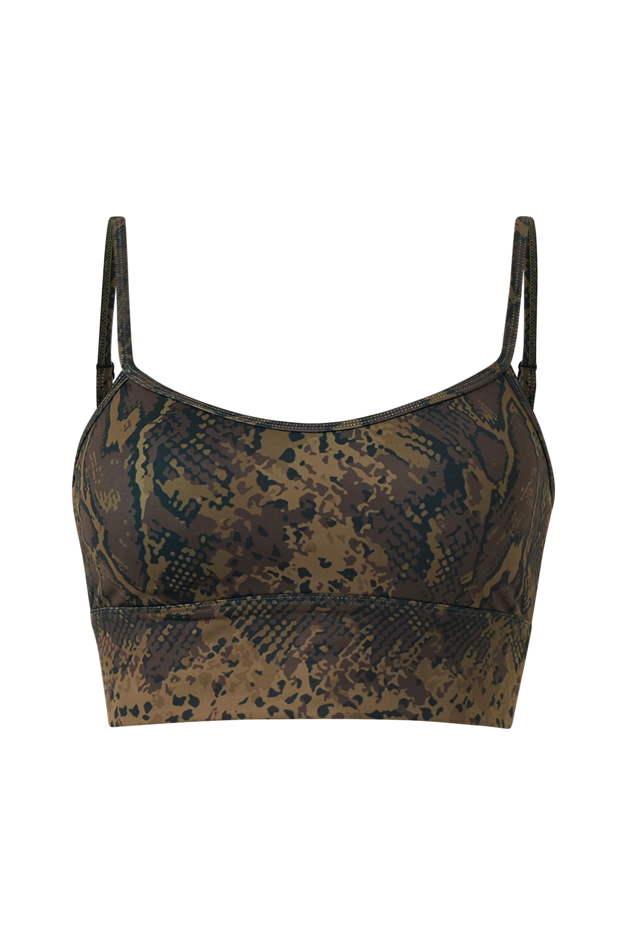 Sports-bh Cobra Logo Strap Bra fra Aim'n. Figursyet model i fugtafvisende stretchmateriale som er åndbart. Smalle justerbare skulderstropper og udtagelige skåle. High support.