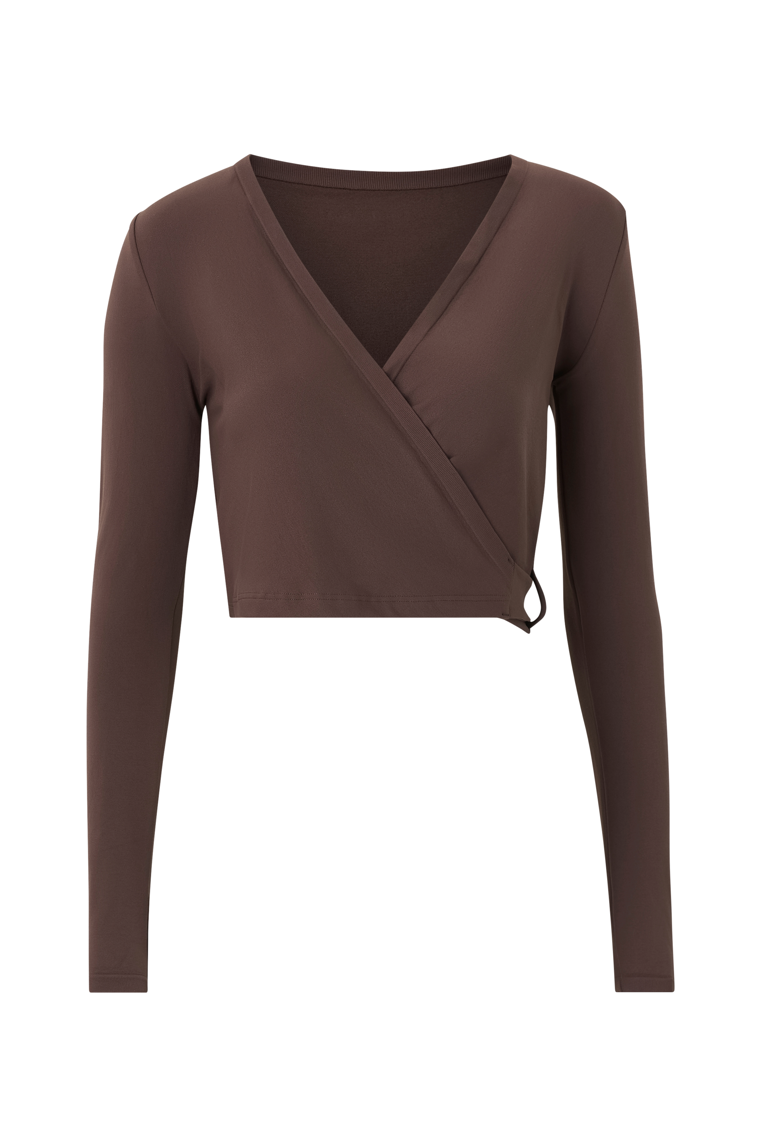 • Elastisk, sømløst stof• Slå-om design med bindebånd ved taljen• Lange ærmer• Shaping-effekt