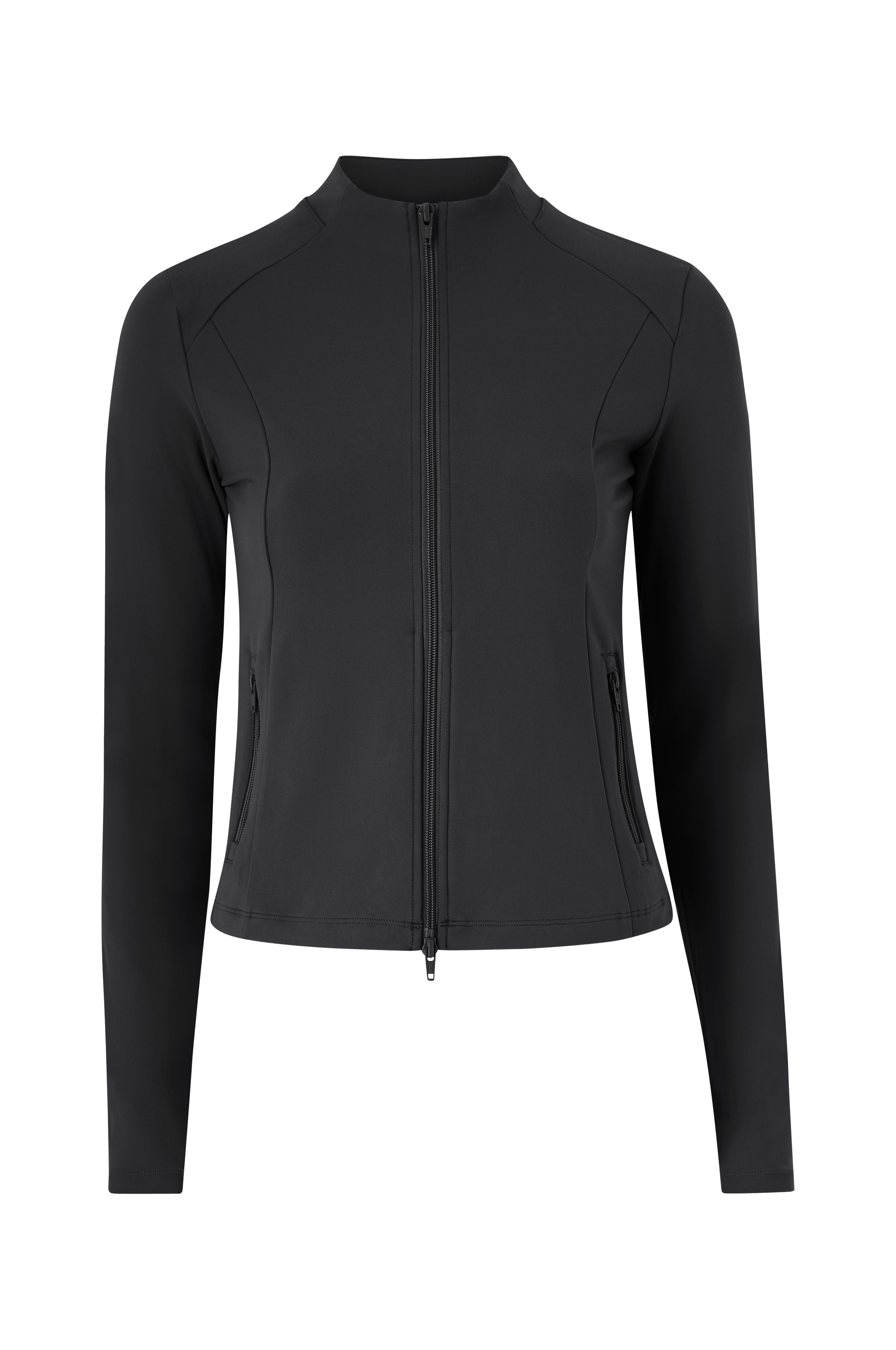 • Smal pasform• Blødt, børstet, hurtigtørrende stof• Høj krave• To-vejs lynlås• To lommer med lynlås• Ventilation på ryggen• Tommelfingerhul ved manchetterne