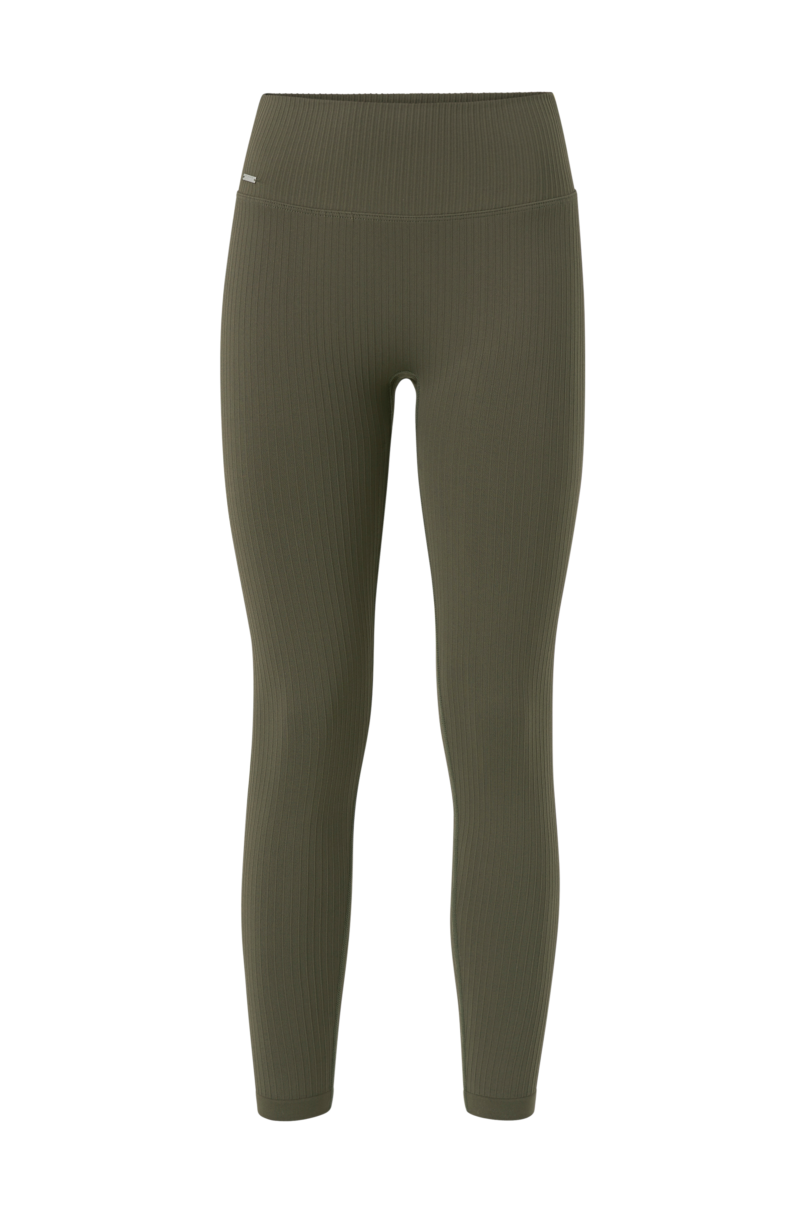 Træningstights Khaki Ribbed Seamless Tights fra Aim'n er fremstillet i et fleksibelt og sømløst riflet stof med 4-vejsstretch, som følger kroppens bevægelser. Tightsene har høj, ribstrikket talje for ekstra support.