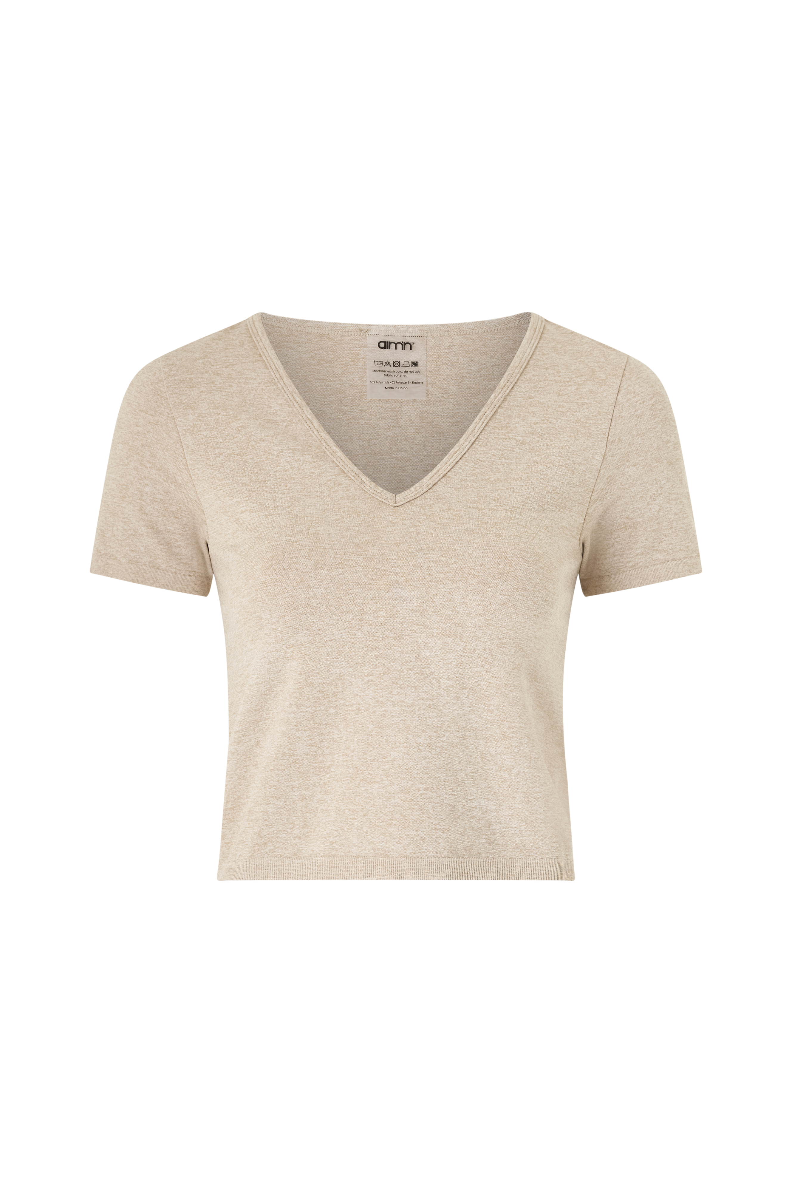 • Kortærmet, meleret træningstop i elastisk materiale• V-formet halsudskæring• Ribkanter ved ærmeafslutningerne og ved nederste kant