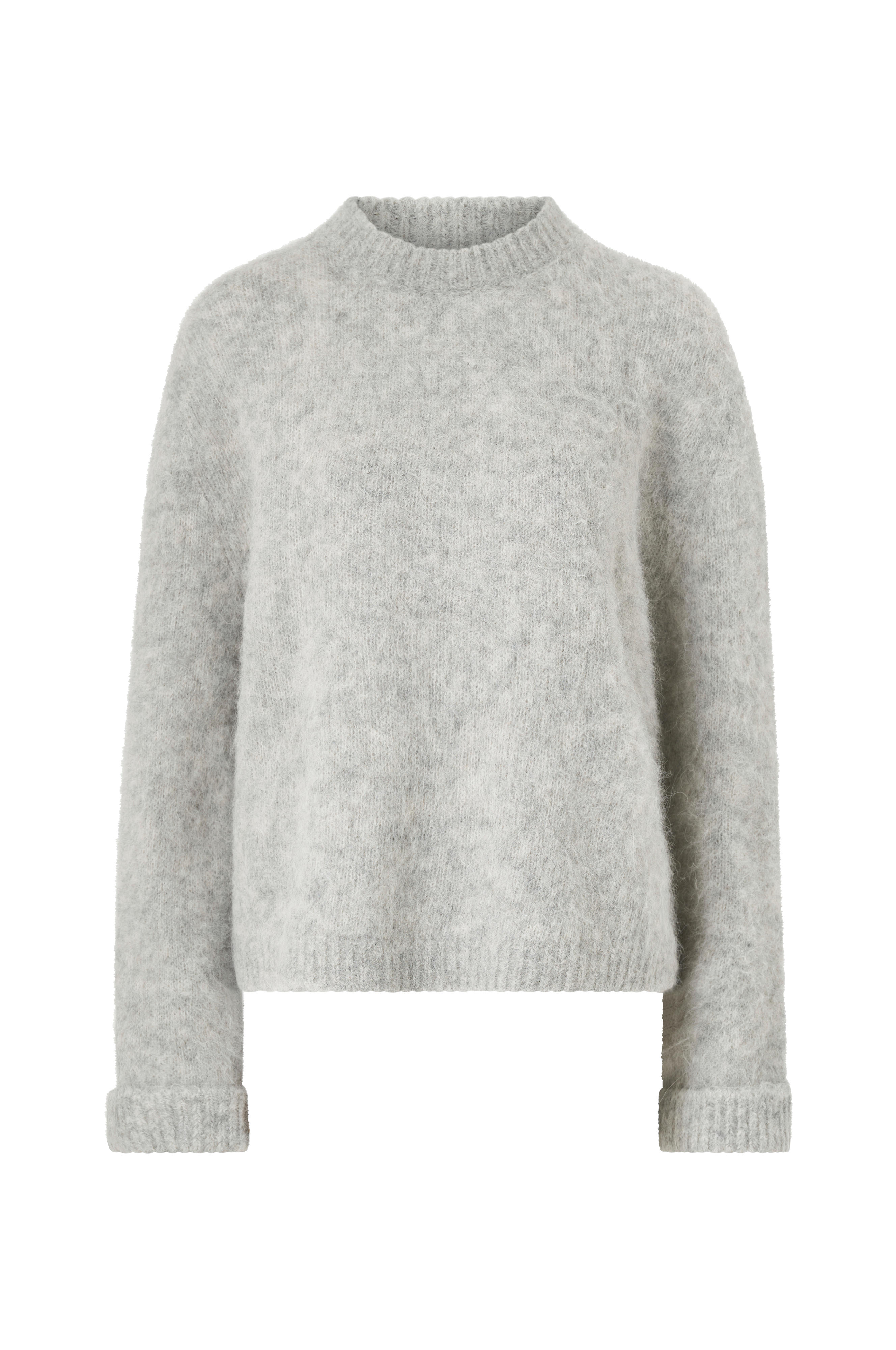• Langærmet, fintstrikket trøje i alpaka med løs pasform• Afrundet, ribstrikket halsudskæring• Foldet ærmeafslutning• Ribstrik nederst• Metalbadge med aim'n-logo på armen