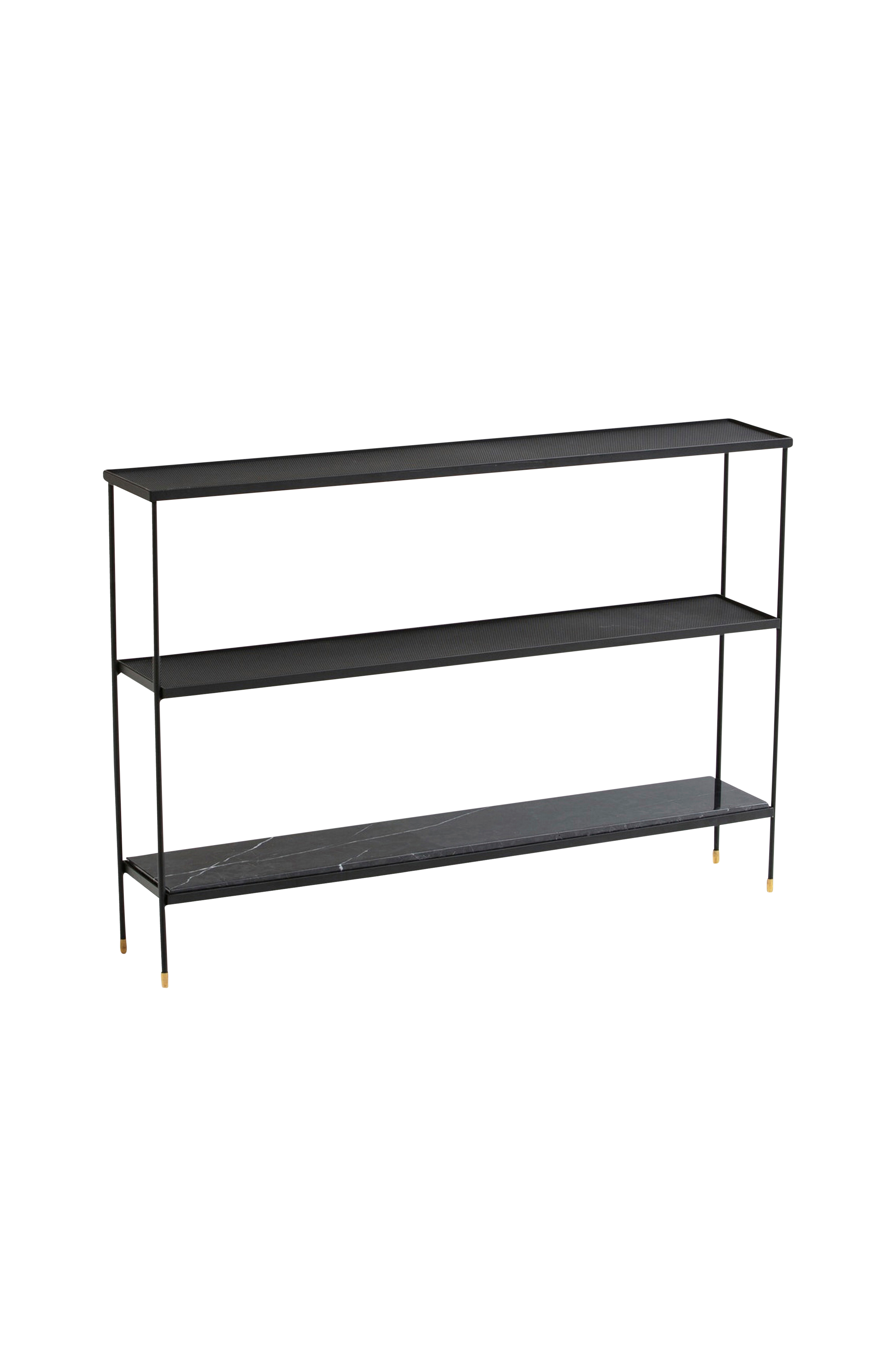 Aflastningsbord perforeret metal sort. Sofistikeret kombination af marmor og perforeret metal. Aflastningsbord i luftigt og tidløst design, med smal hyldeflade som gør at den passer i dagligstuen, soveværelset eller til og med i badeværelset.