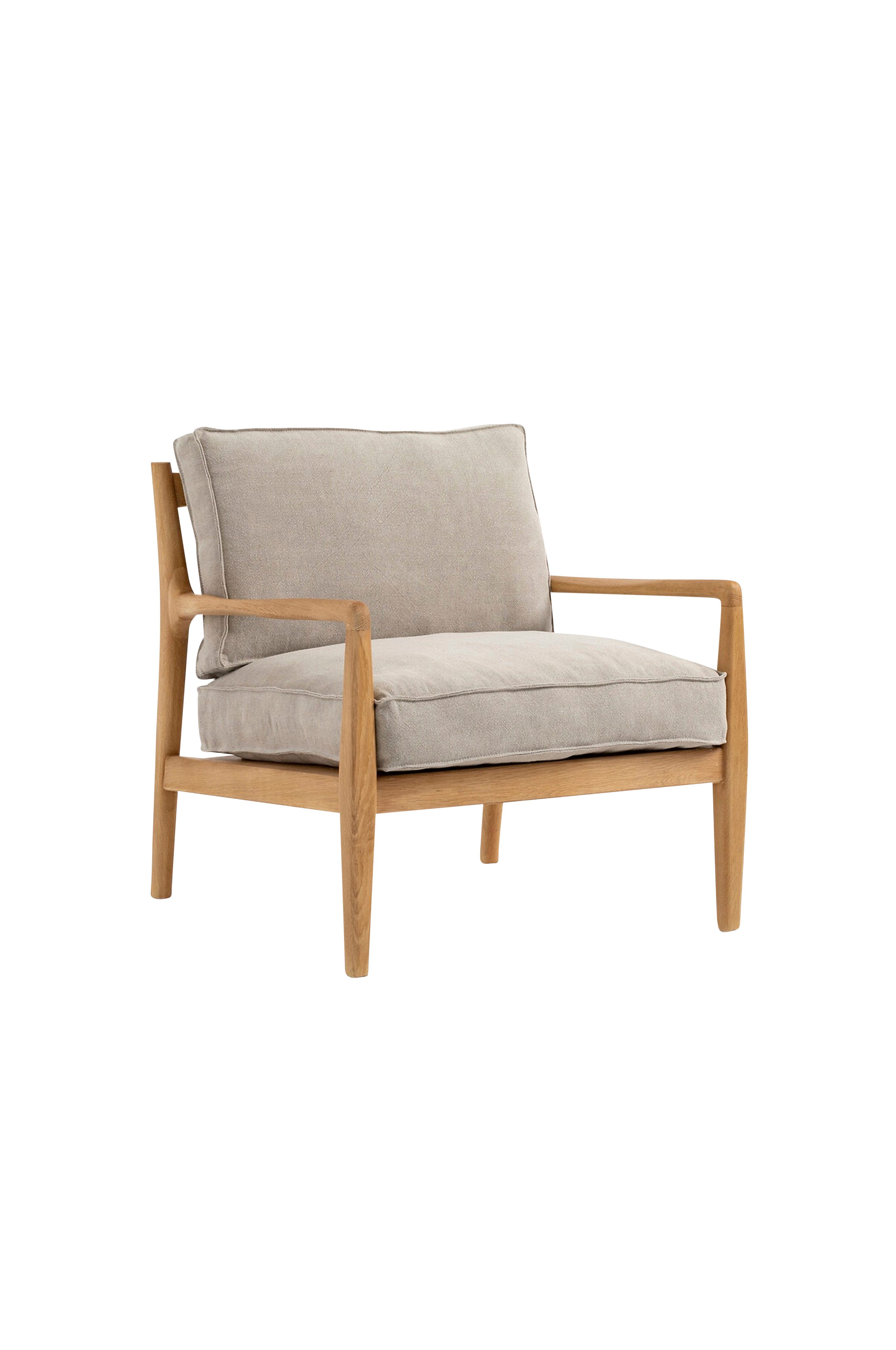 Med organiske former, skulpterede armlæn og slebne hjørner fremtræder en stol i blød skandinavisk stil, inspireret af 50'erne. Ryglænet har perfekt hældning og de behagelige hynder er betrukket med hørstof, hvilket giver en tidløs lænestol. Dilma, en ikonisk lænestol fra AM.PM.
