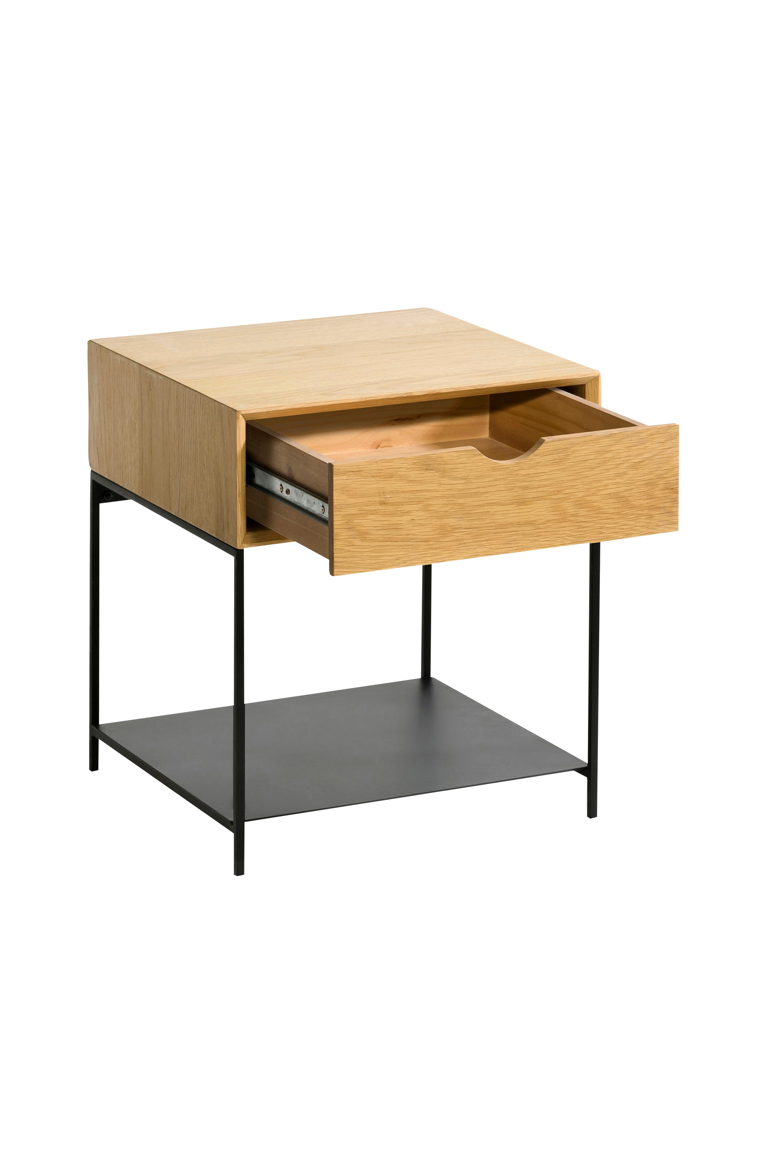 50'er-inspireret sengebord i en harmonerende kombination af træ og metal.