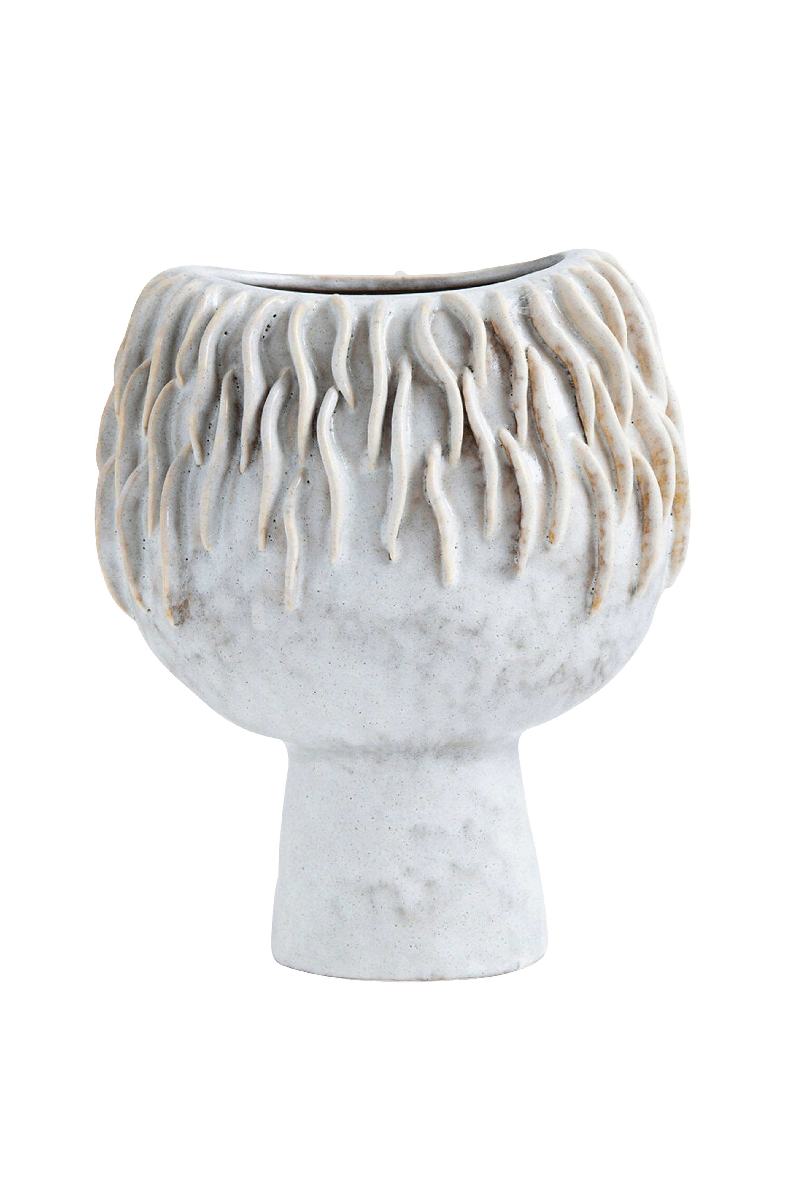 Armand vase på fod af emaljeret stentøj med smukt reliefmønster. Emaljeret stentøj med fin glans, mønsteret kan variere mellem de forskellige produkter
