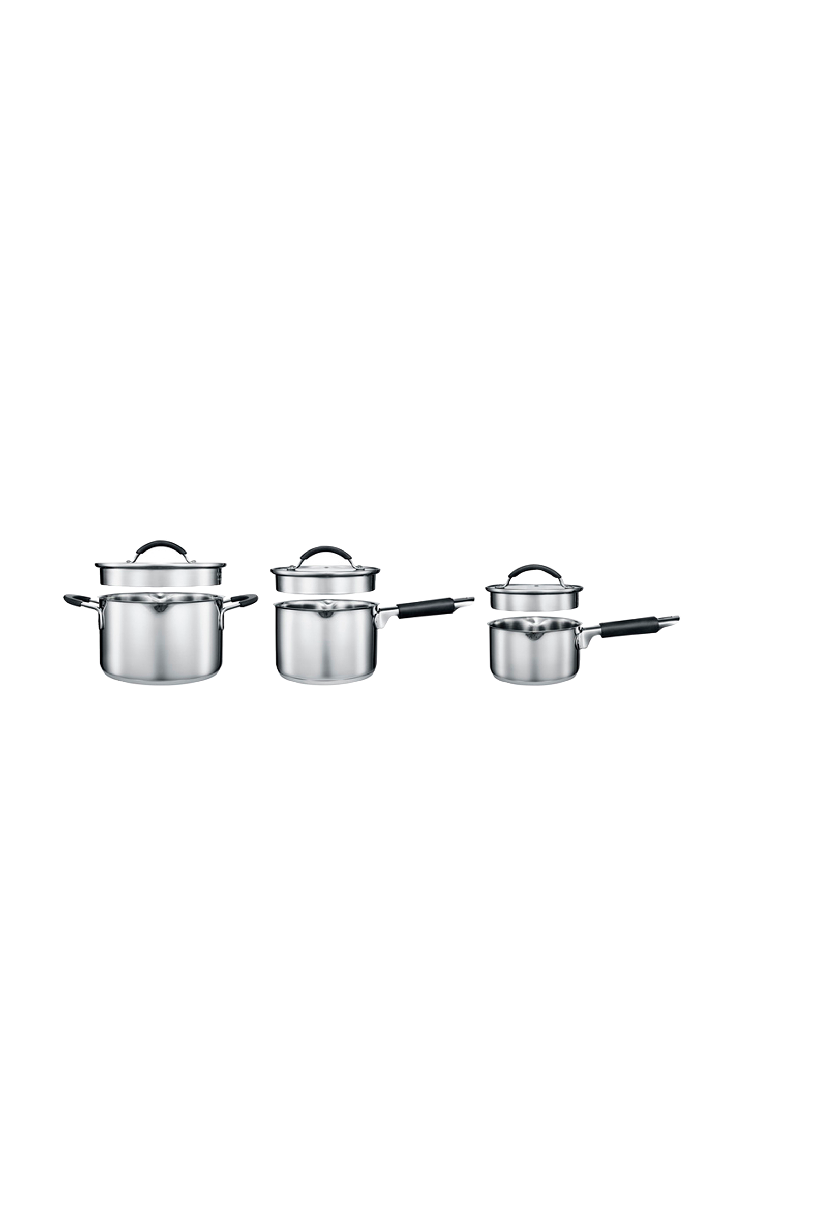 fremstillet af materialer af høj kvalitet, der gør madlavningen lettere. Sættet består af kasseroller og en gryde i rustfrit stål 18/10 med et moderne design, der passer til ethvert køkken. Kogegrejet har glaslåg, som gør det nemt at holde øje med maden uden at løfte låget.