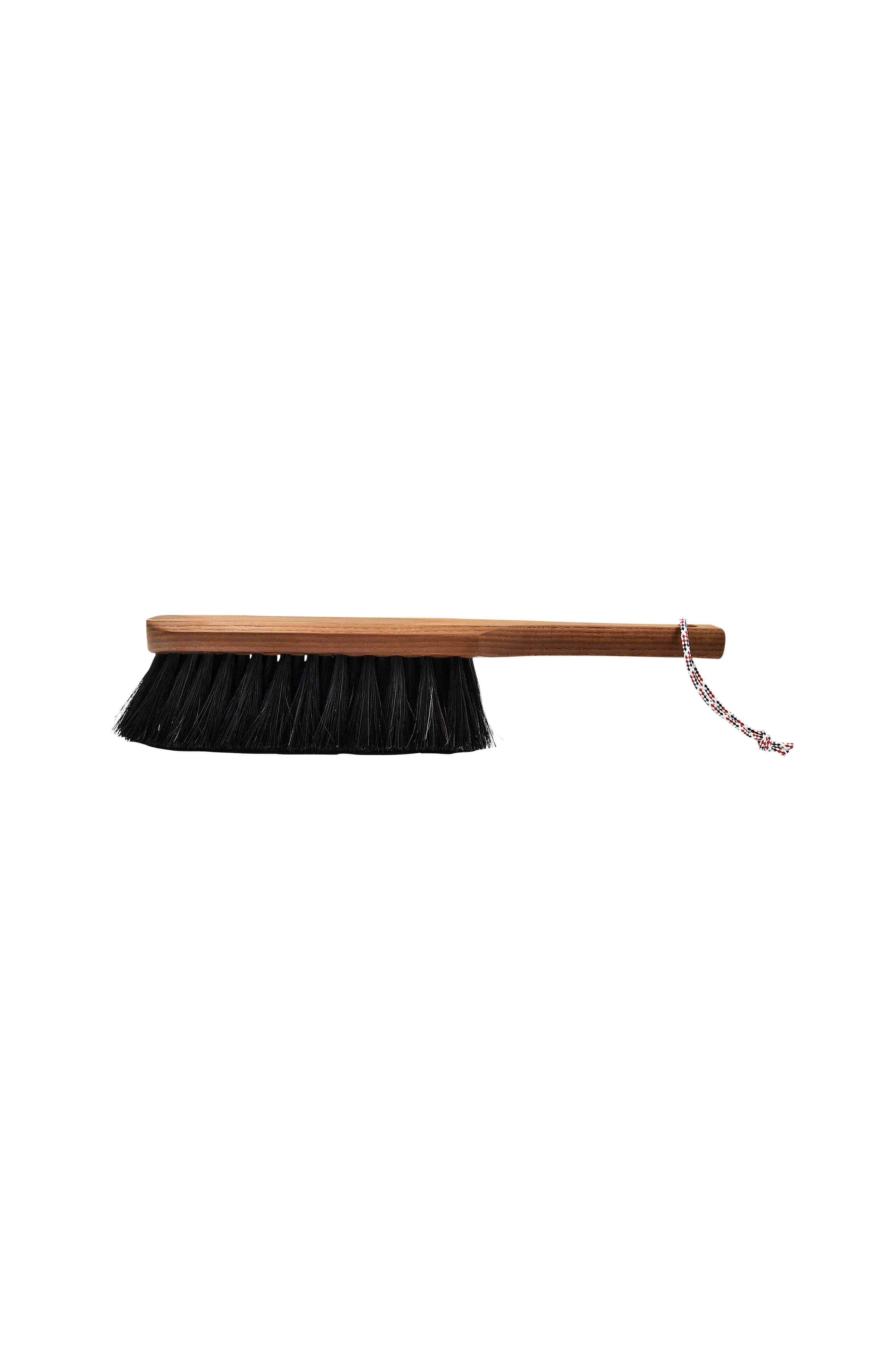 Håndkost af varmebehandlet asketræ og hestehår. Beregnet til udendørs brug. Kosten vedligeholdes ved vask med sæbe og vand. Ryst vandet af og lad kosten tørre ved stuetemperatur. Afslut med at rede kostehårene. Størrelse: 35 x 7 x 8 cm